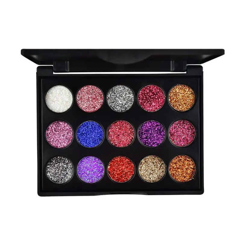Тени для век TEAYASON, 15 цветов, блестящая пудра с блестками, блестящие тени для век, сценический макияж, блестки, диск для макияжа