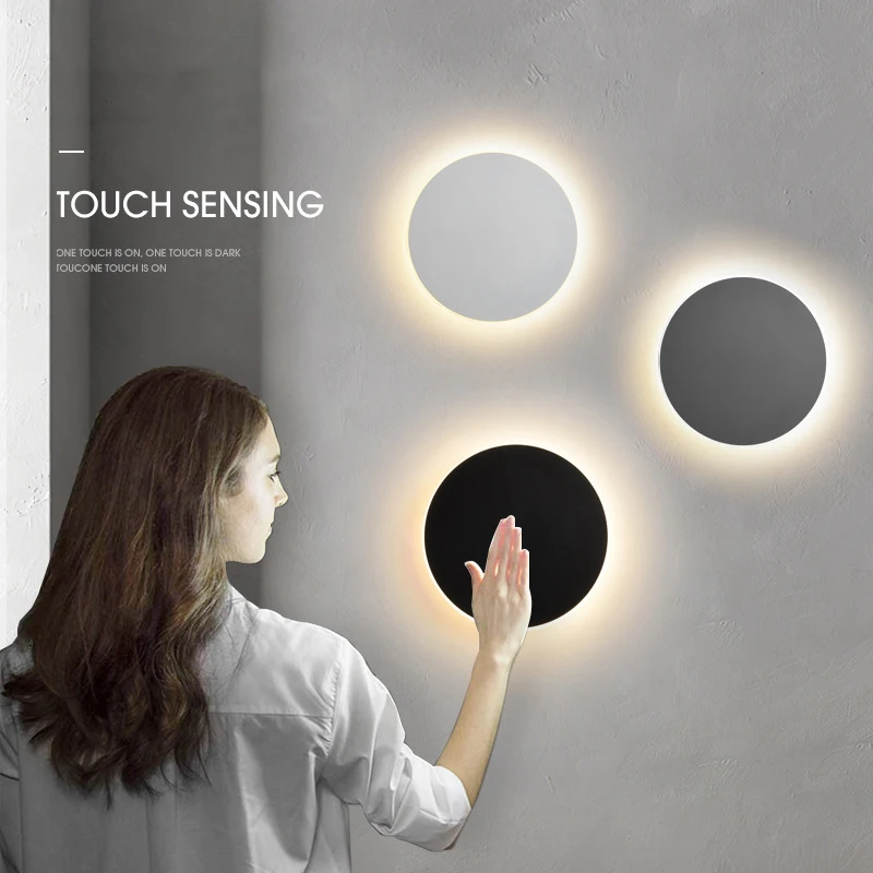 Круглая светодиодная настенная лампа, современный сенсорный выключа...