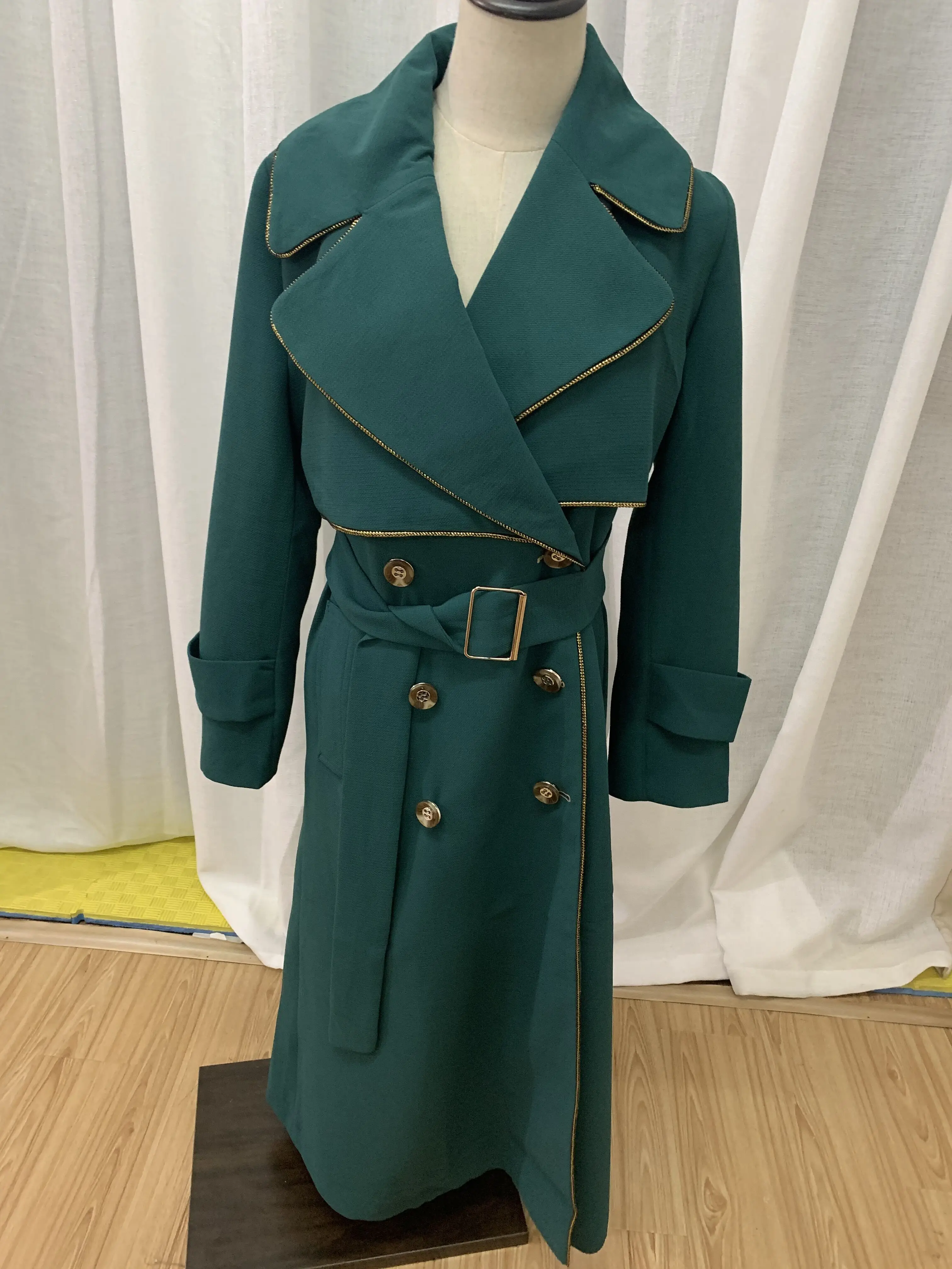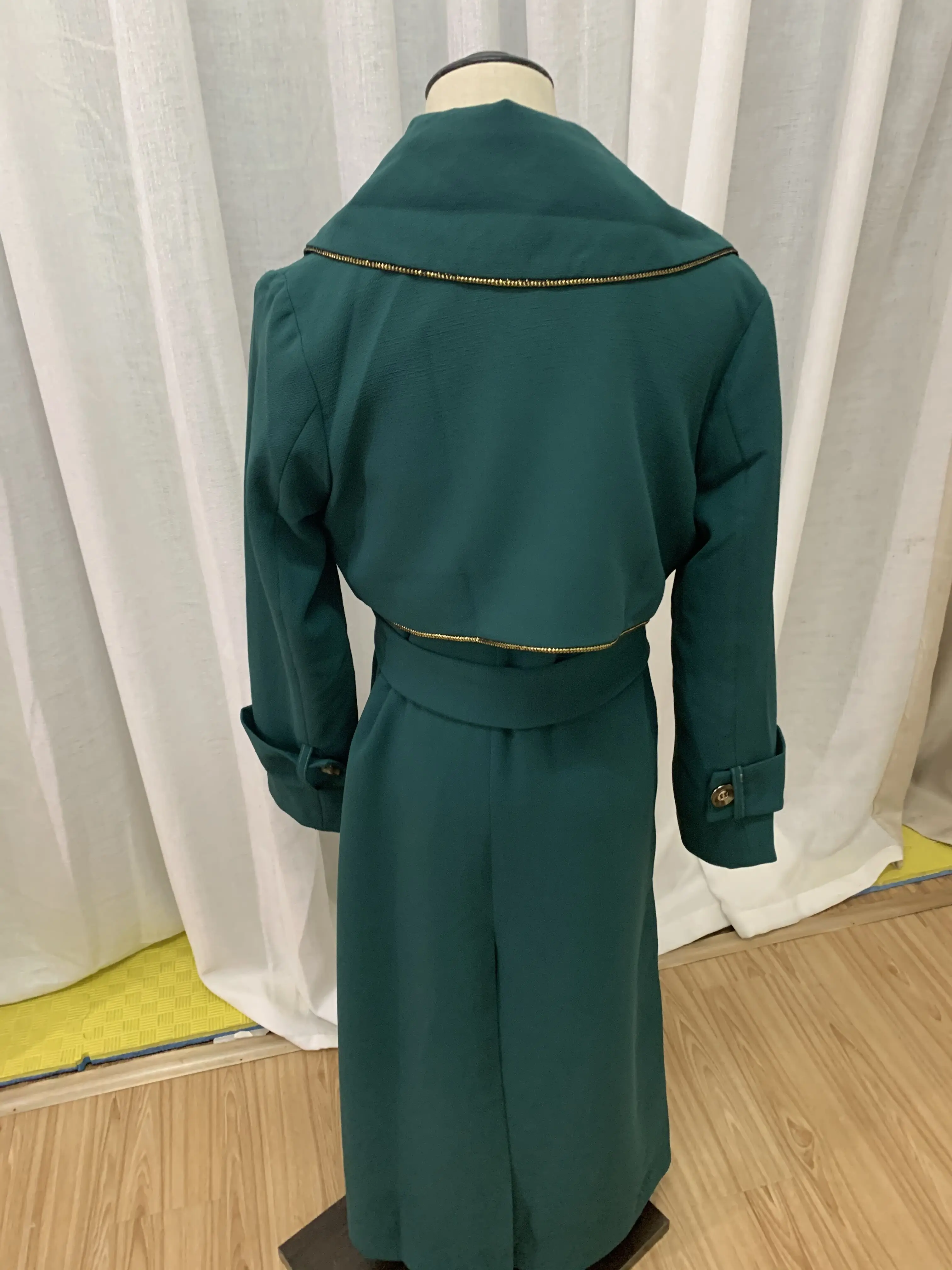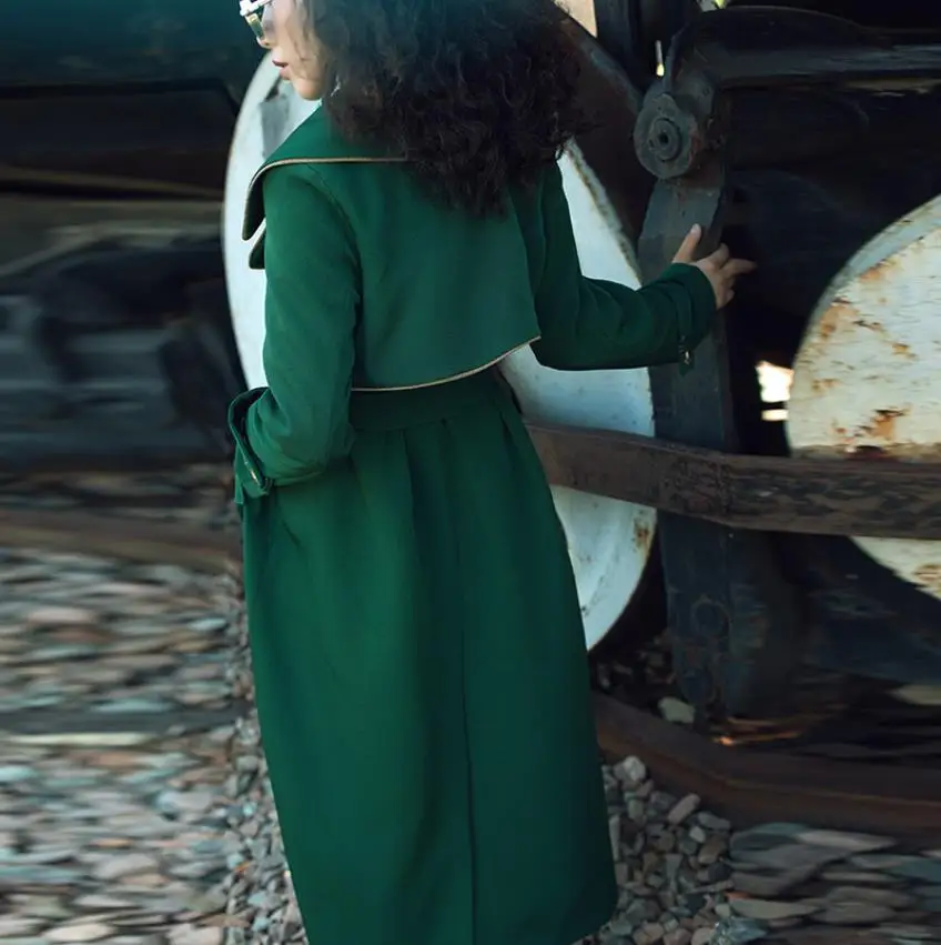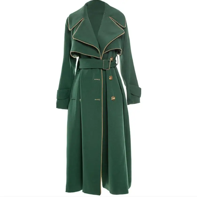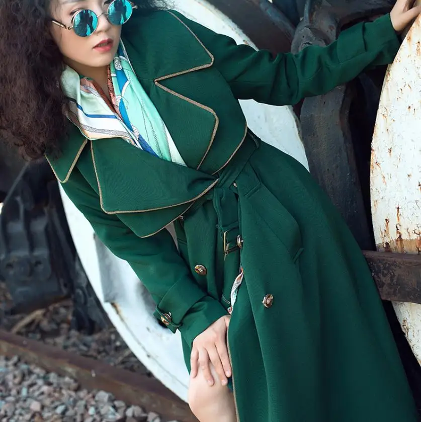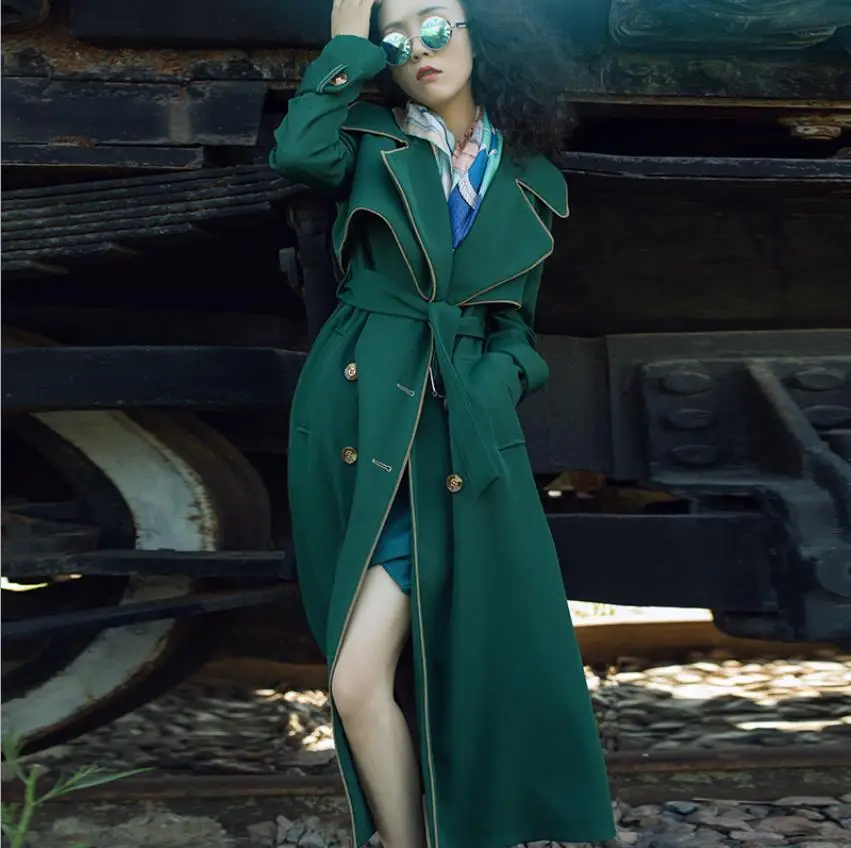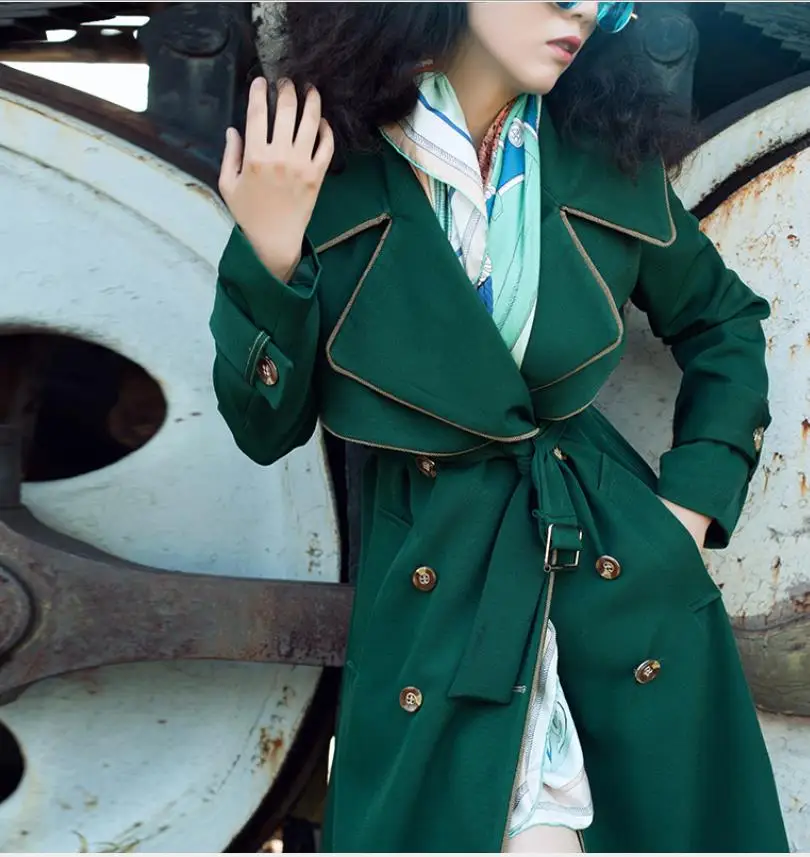 Женская двубортная ветровка средней длины, темно-зеленая ультрадлинная элегантная ветровка в британском стиле, осень 2021