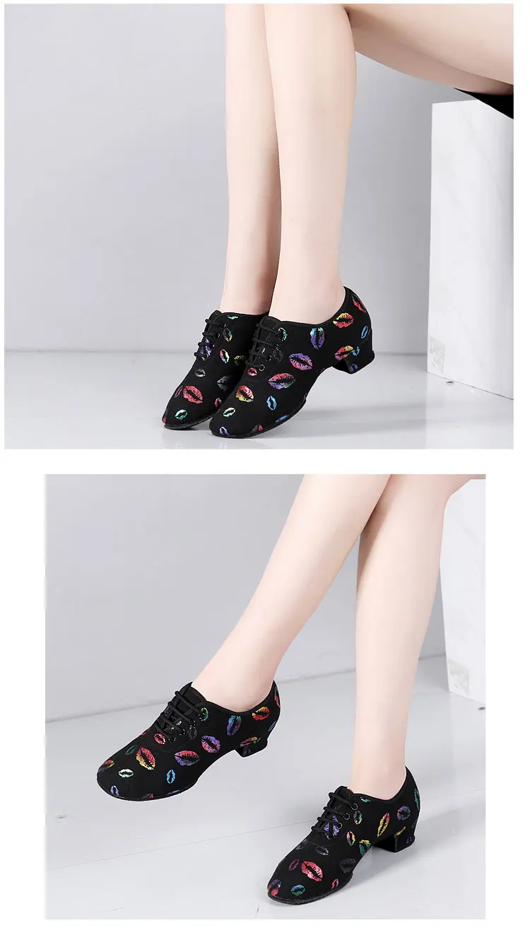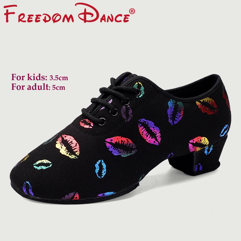 Туфли женские на высоком каблуке 3,5 см, кроссовки для бальных танцев, обувь для латинских танцев, танцевальная обувь, закрытый носок, Каблук 5 см, для детей и взрослых