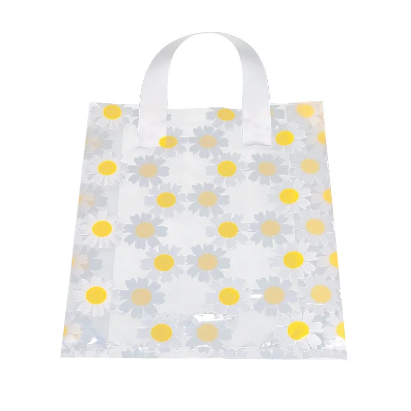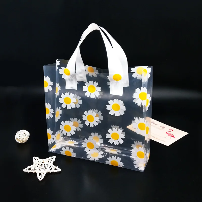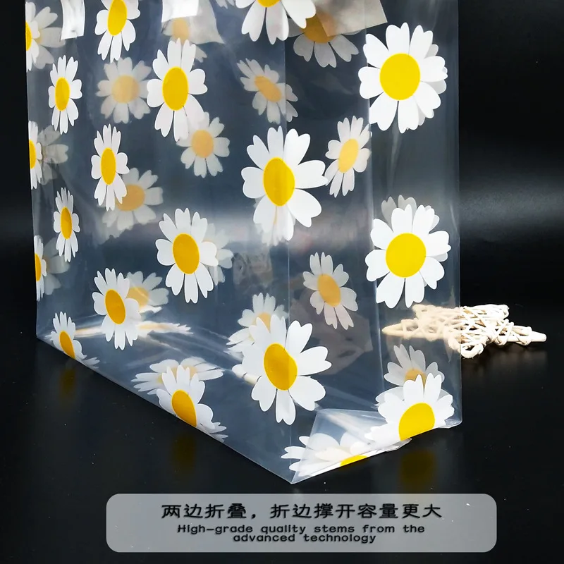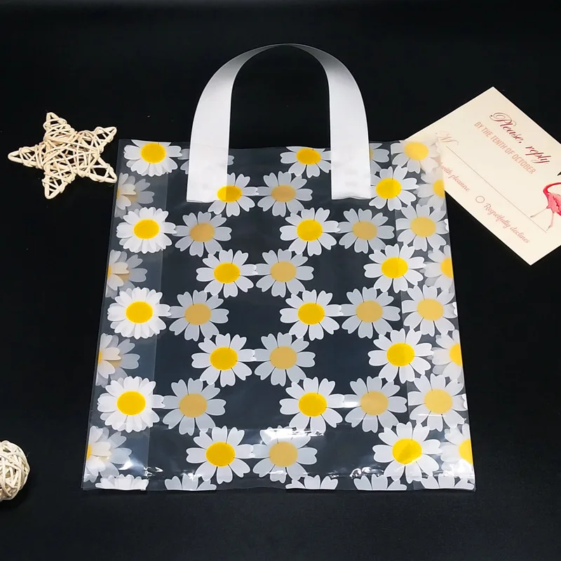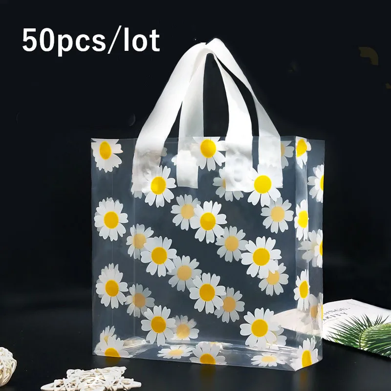 50 шт. прозрачные маленькие маргаритки, портативные подарочные пакеты для одежды, пластиковый пакет для покупок, женский подарочный пакет, упаковочный пакет
