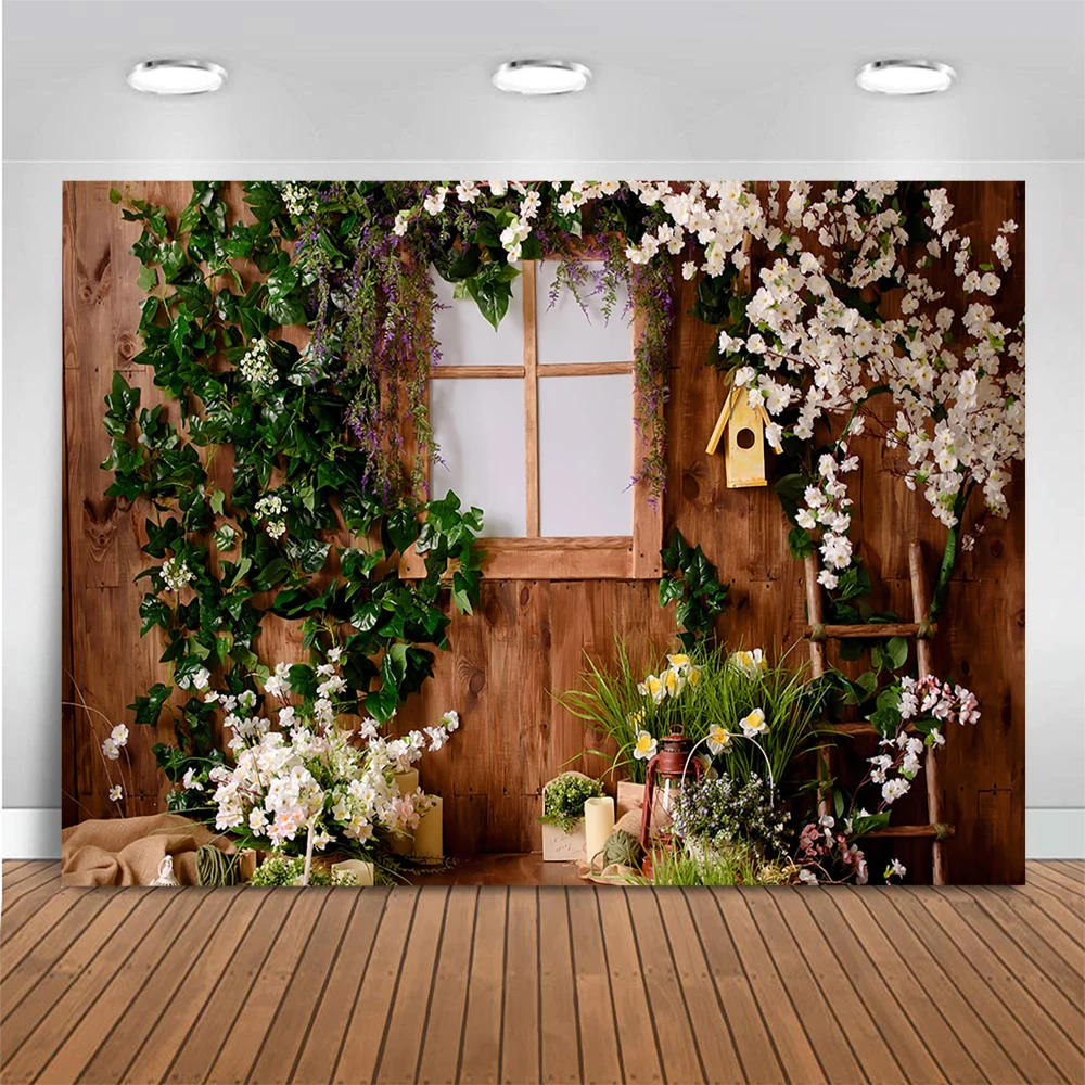 Фон для фотосъемки на день рождения с изображением деревянного окна...