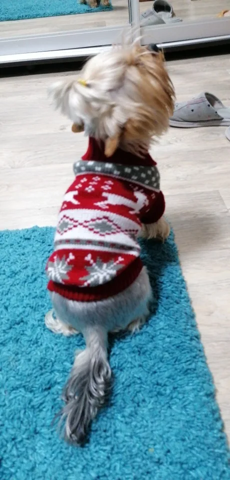 Размерная сетка неточная, в результате заказала свитер дважды у этого продавца и ещё один раз у другого. Так и не получила желаемое. Свитер 10 размера пришел как 12 длиной от холки до хвоста 29 см. Этот заказала 8 размер. После переписки с продавцом с просьбой прислать свитер 26 см от основания холки до хвоста мне написали, выбирайте, размеров много. Как выбирать? Потом сказали хорошо, мы вам вышлем 8 размер. В результате длина 20 см.
