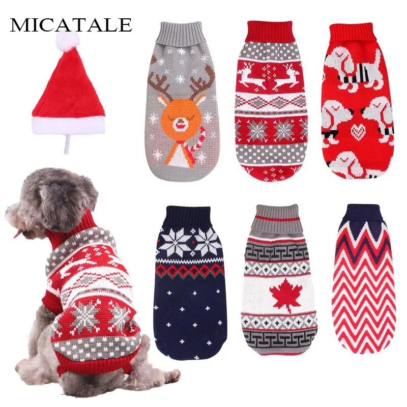 Рождественская Одежда для собак MICATALE, свитер для собаки, с высоким воротником, свитер для кошек, пальто для собак, зимняя теплая куртка, вязаный костюм