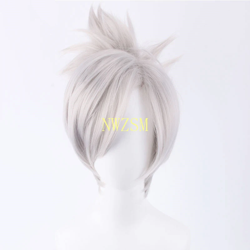 Парик для косплея Лига Легенд, серебристо-белые короткие синтетические волосы