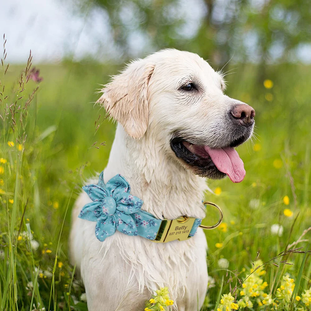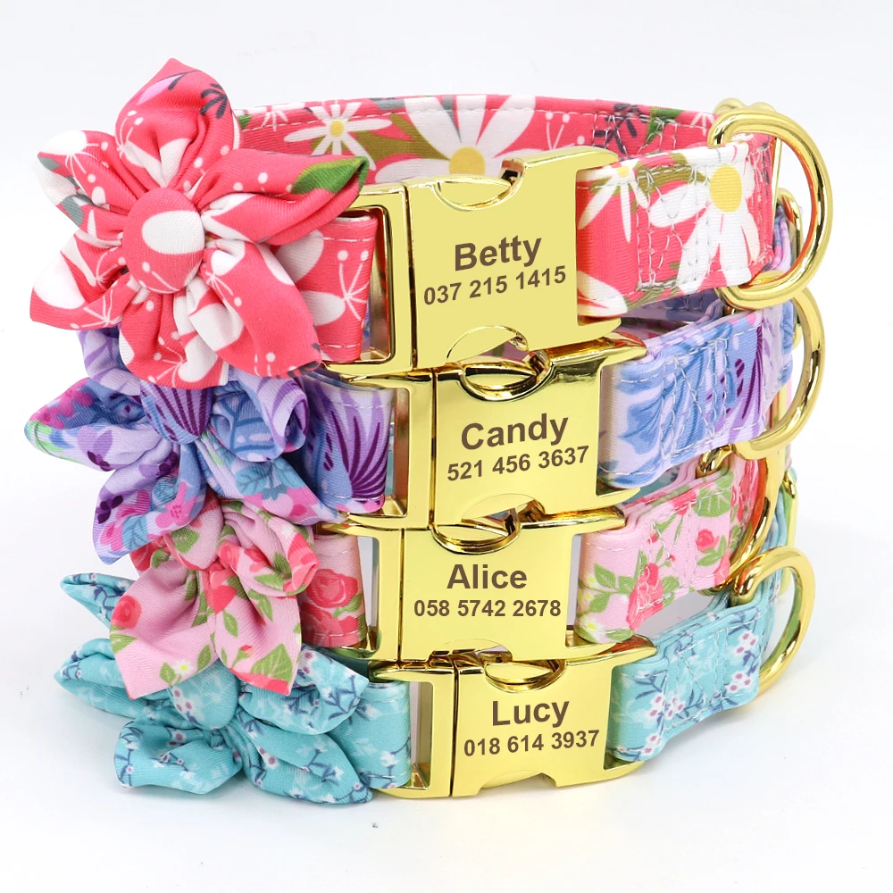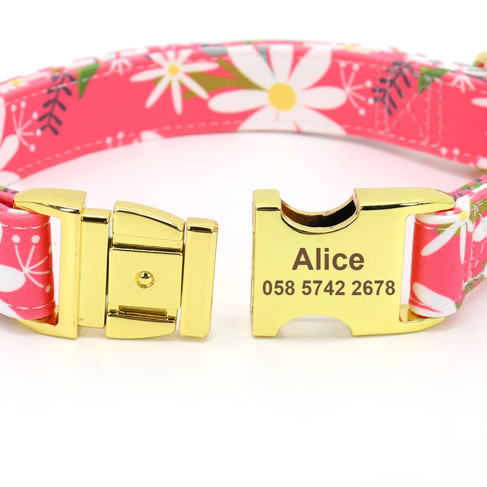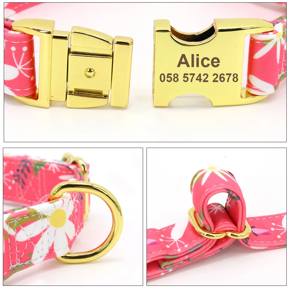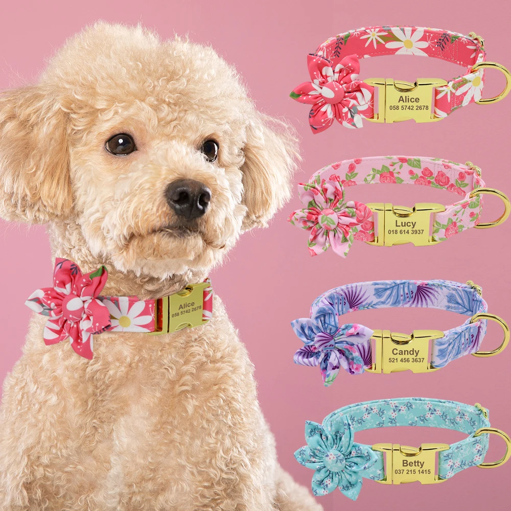 Нейлоновый ошейник с принтом для собак, персонализированные ошейники с ярлыком для собак, маленькие, средние, большие собаки, ожерелье с цветком, аксессуары для домашних животных, для прогулок