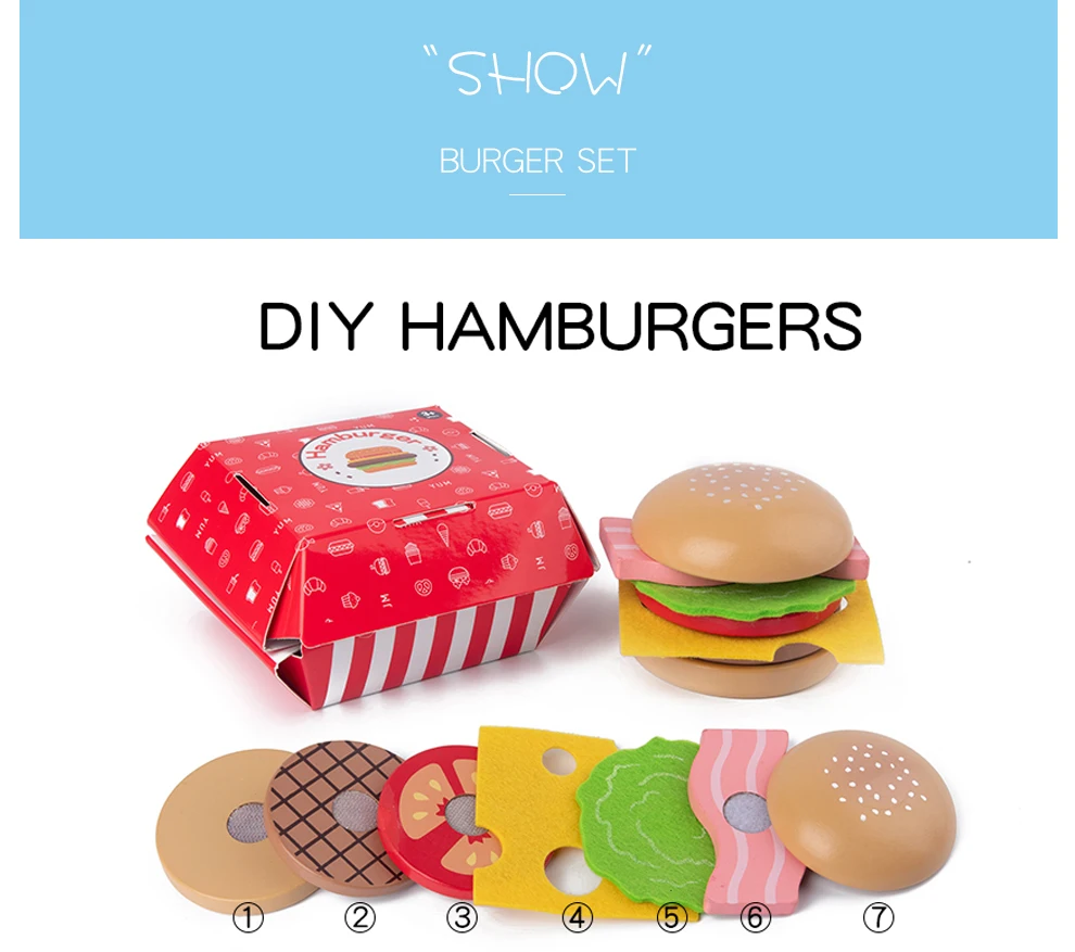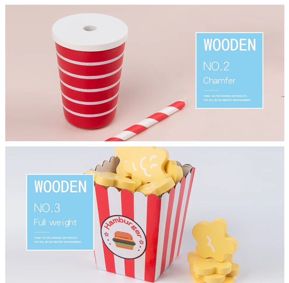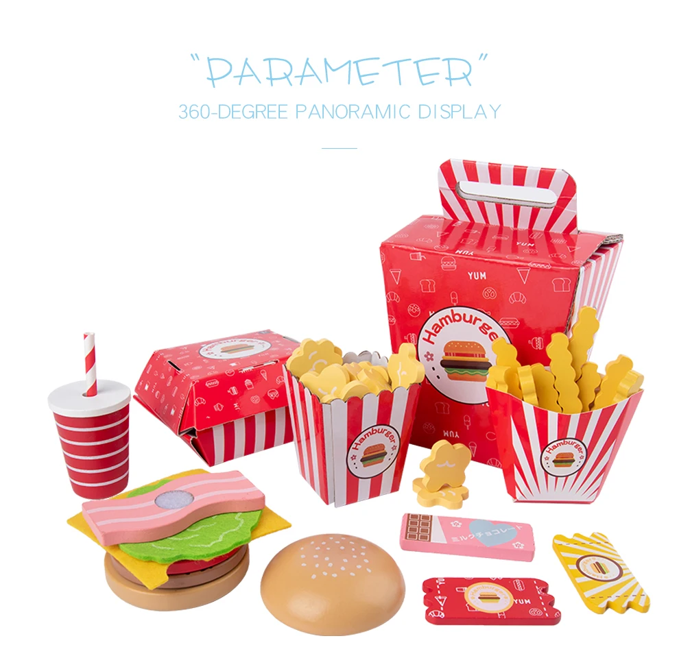 Деревянный имитация реальной жизни гамбургер фри фаст-фуд Модель Набор Дети ролевые игры игрушка создание укладки гамбургер набор детские подарки