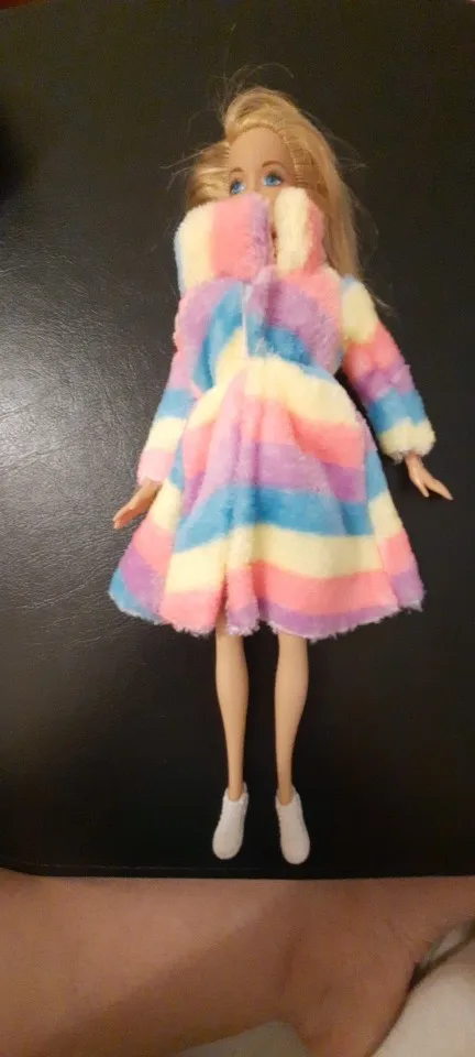 Потребовалось два месяца, чтобы добраться до Пуэрто-Рико. Это прекрасно. Очень деликатный на рукавах, очень хрупкая ткань .. Это идеально подходит для Барби.