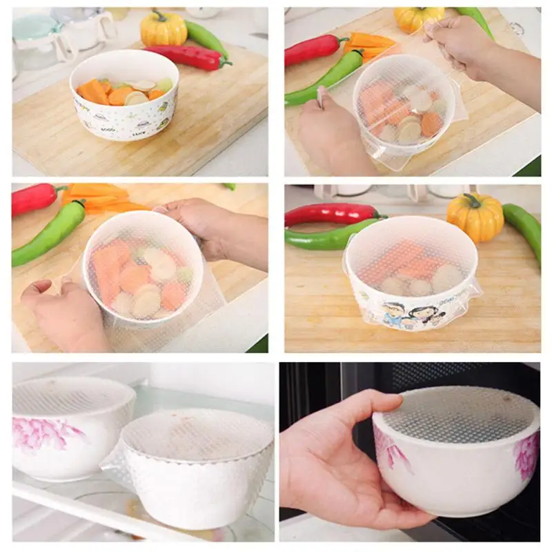Растягивающийся: силиконовые обертки обладают растягивающейся герметичностью и всасывающим уплотнением, что позволяет плотно прилегать к чашам, банкам и т. д.