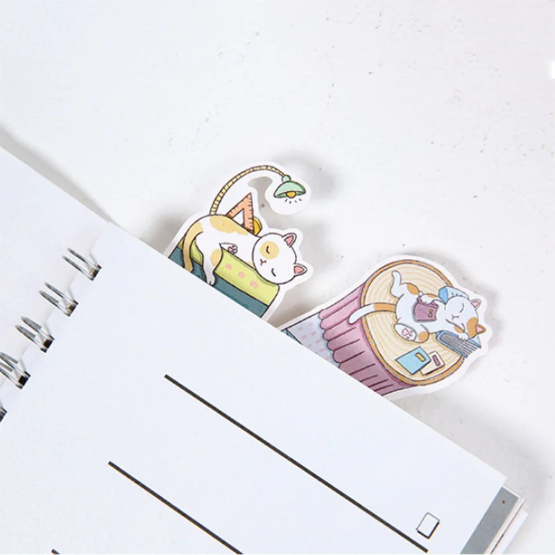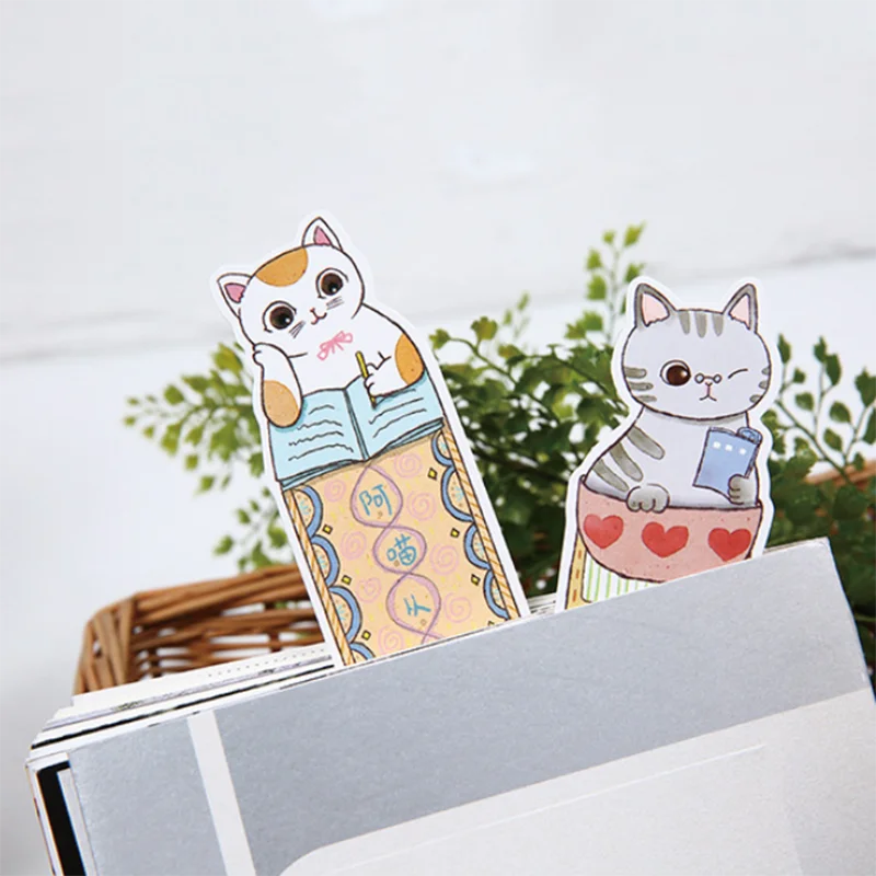 30 шт.упак. милые закладки для книги для чтения кошки бумажные Мультяшные закладки держатель для страниц карточки сообщения Kawaii Канцтовары для учителей