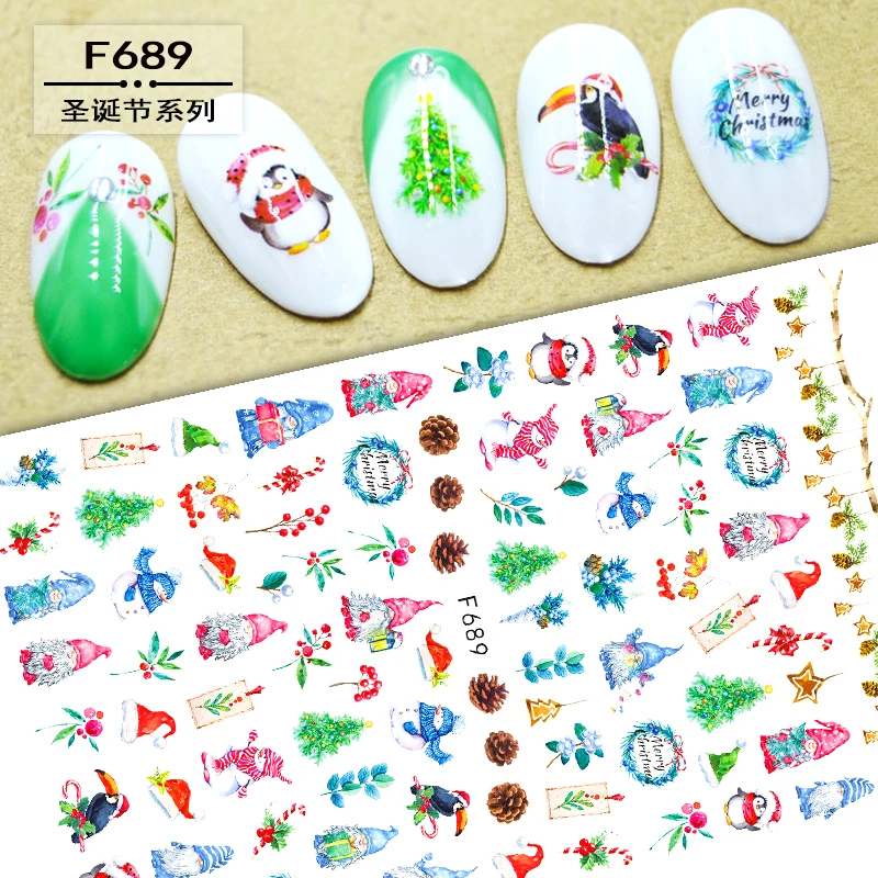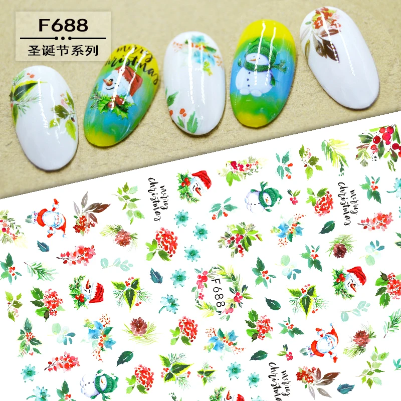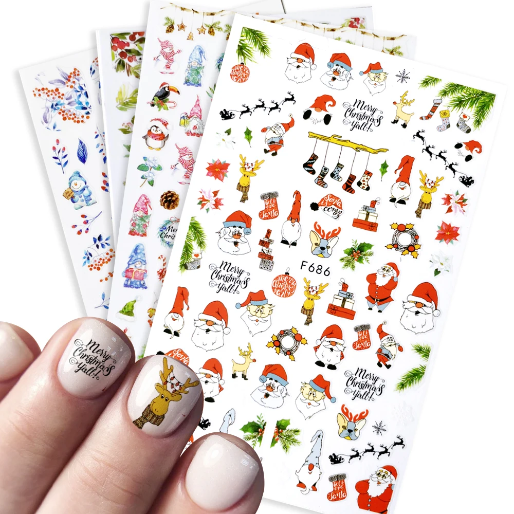 1 шт. Зимняя серия 3d наклейки для ногтей Рождественский Санта-КлаусСнеговик узор клейкий Маникюр слайдер украшение 2020 Новинка