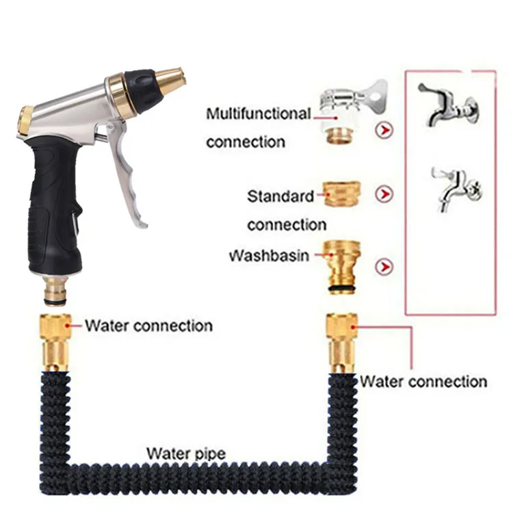 Горячая Распродажа 25ft-100ft садовая магический брандспойт телескопический шланг гибкий Пластик шланг для мытья автомобиля металла пистолет-распылитель на открытом воздухе для полива сада