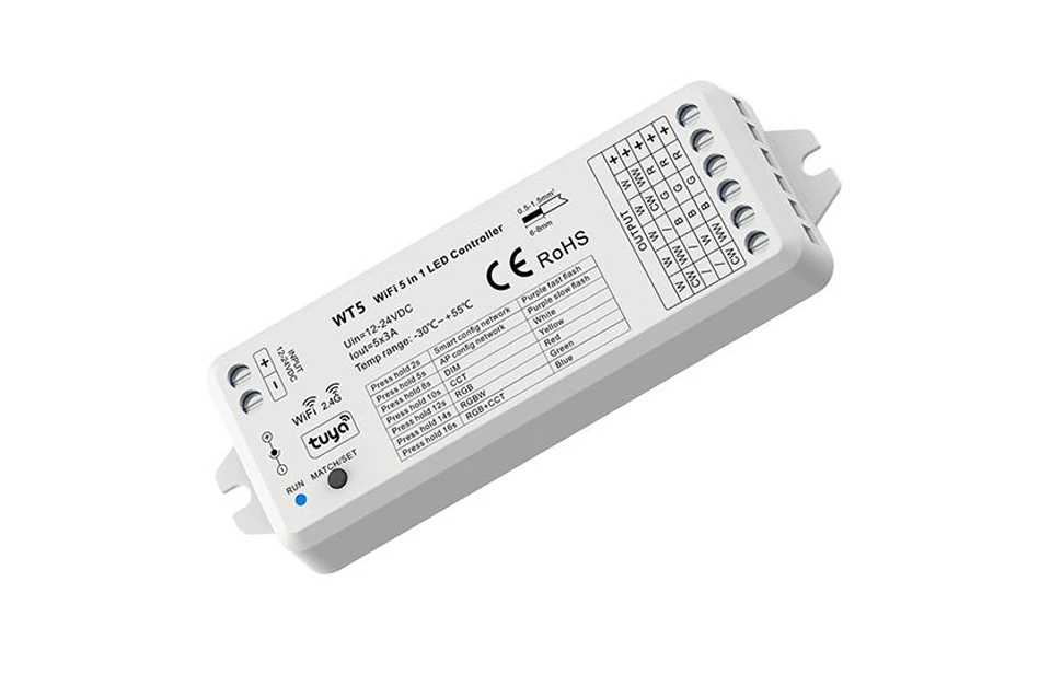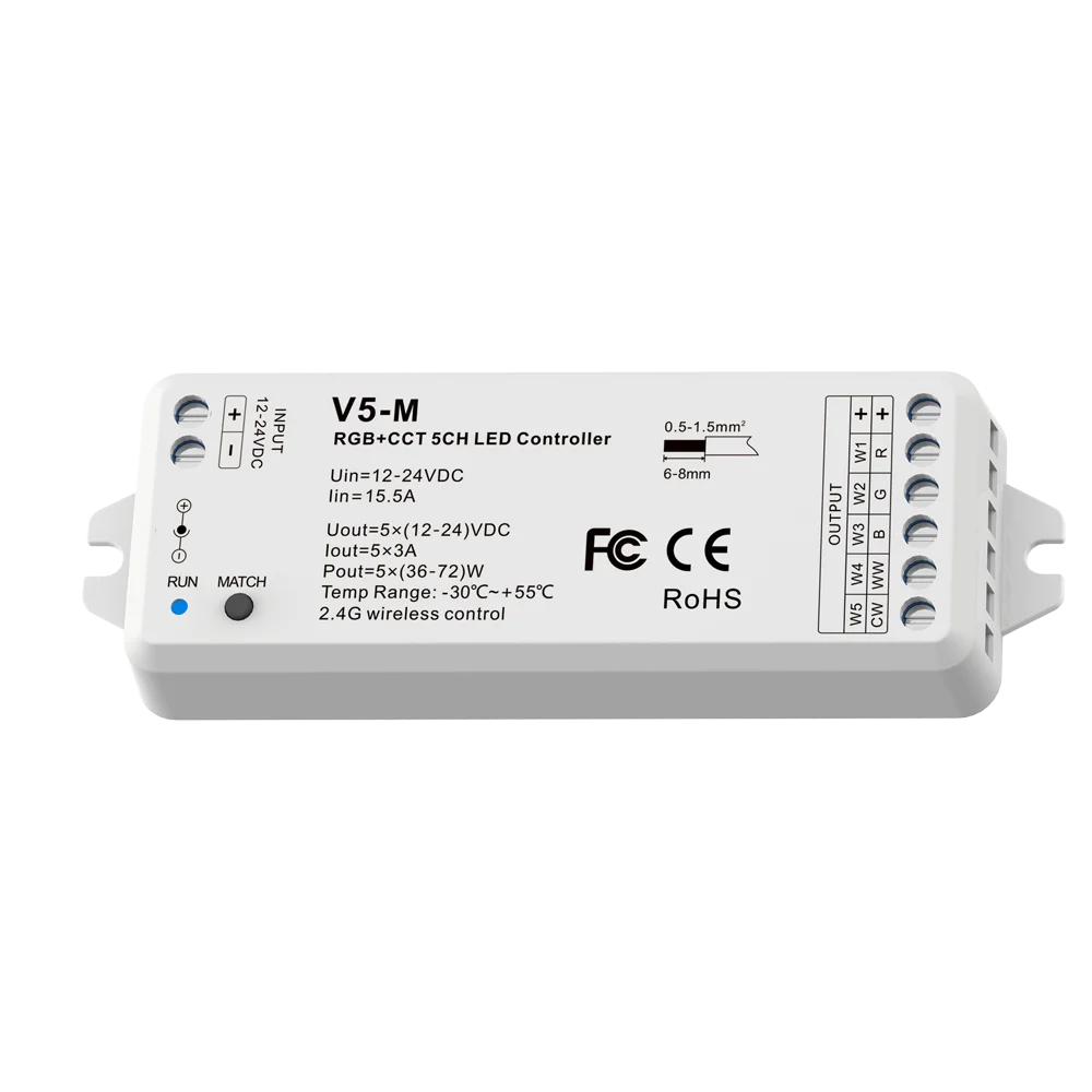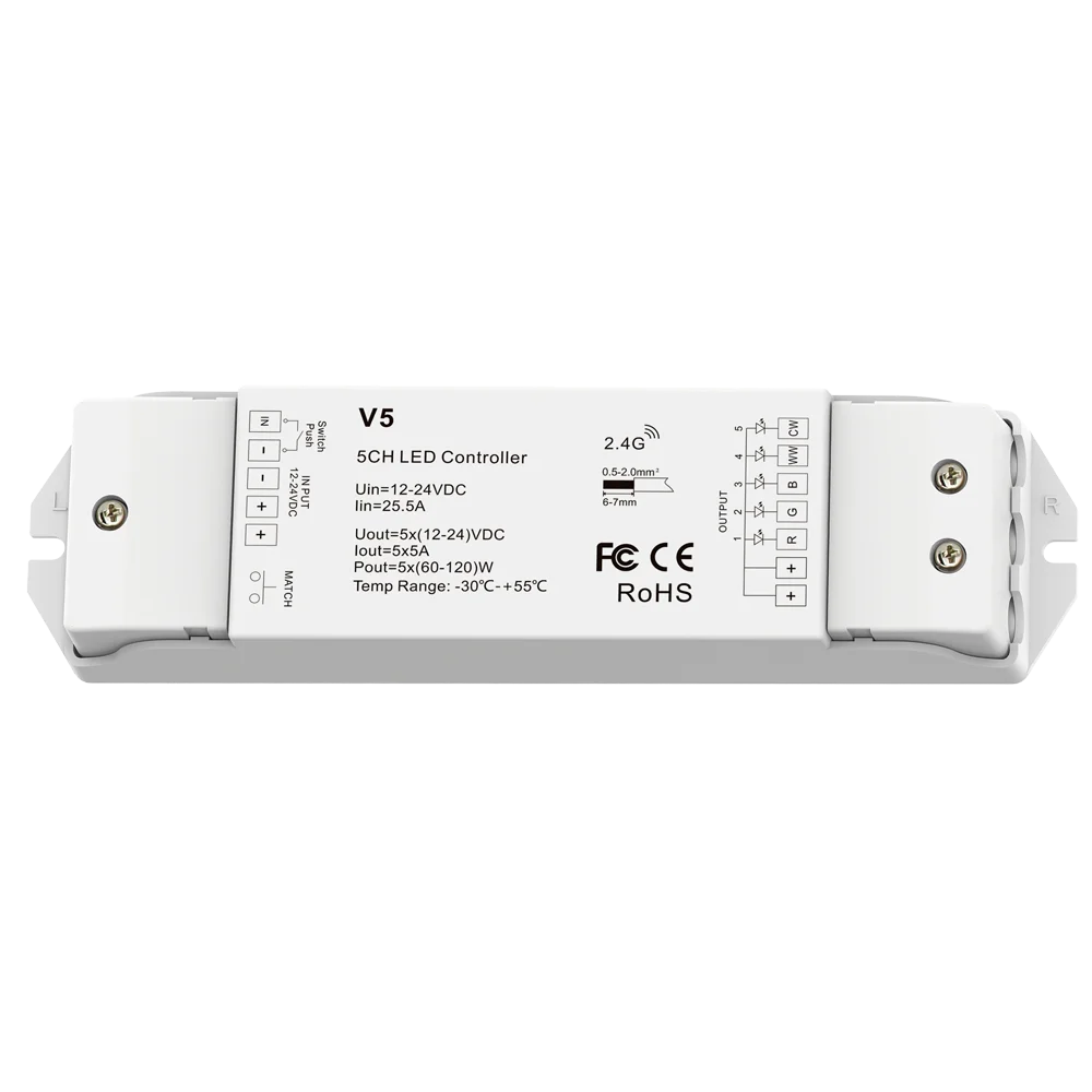 Контроллер для светильник ты 5050 RGBCCT, 5 каналов, 2,4 ГГц, контроллер 2835, 5050, 5 в 1, Светодиодная лента RGB CCT CW WW, 12 В постоянного тока, 24 В, макс. 600 Вт, 30 м