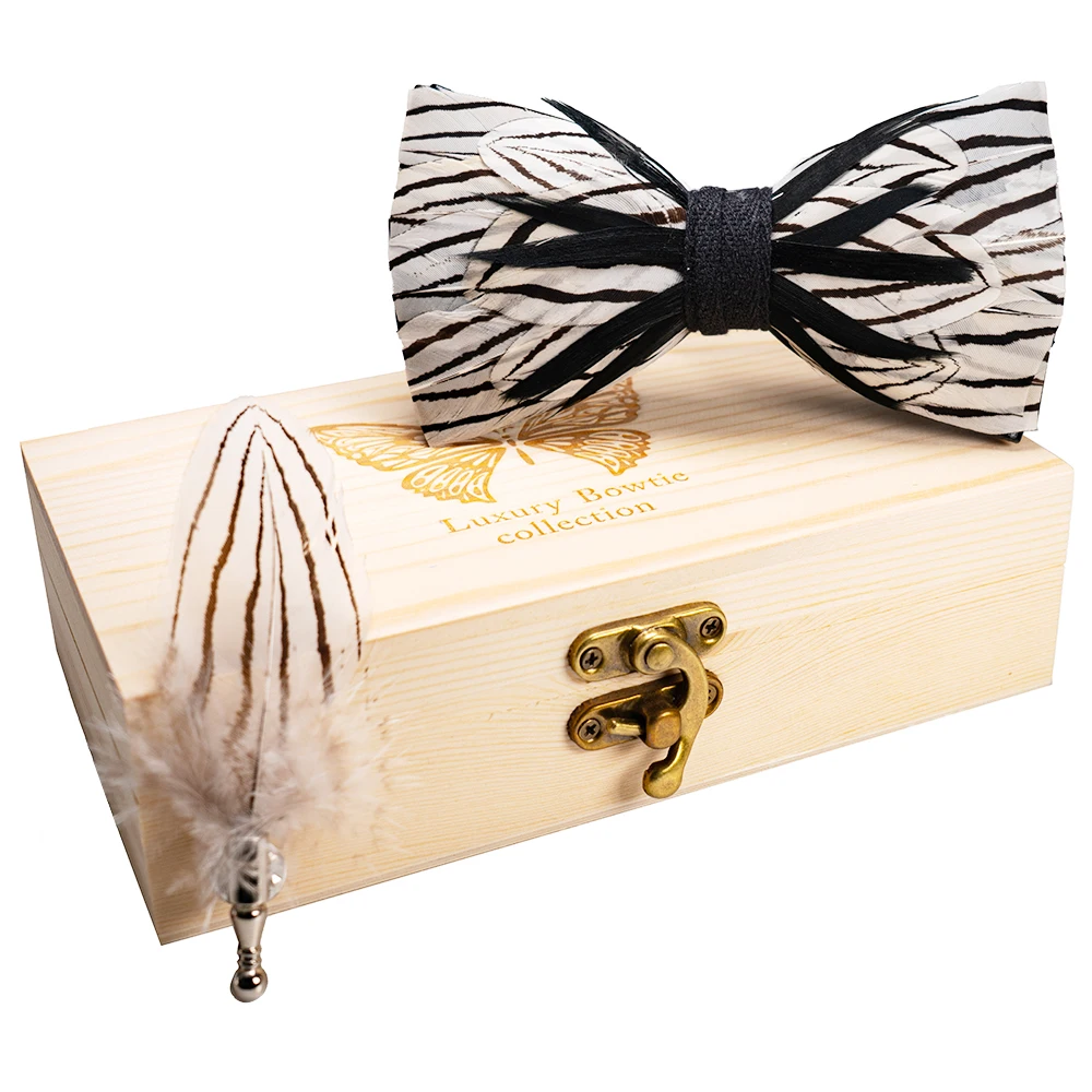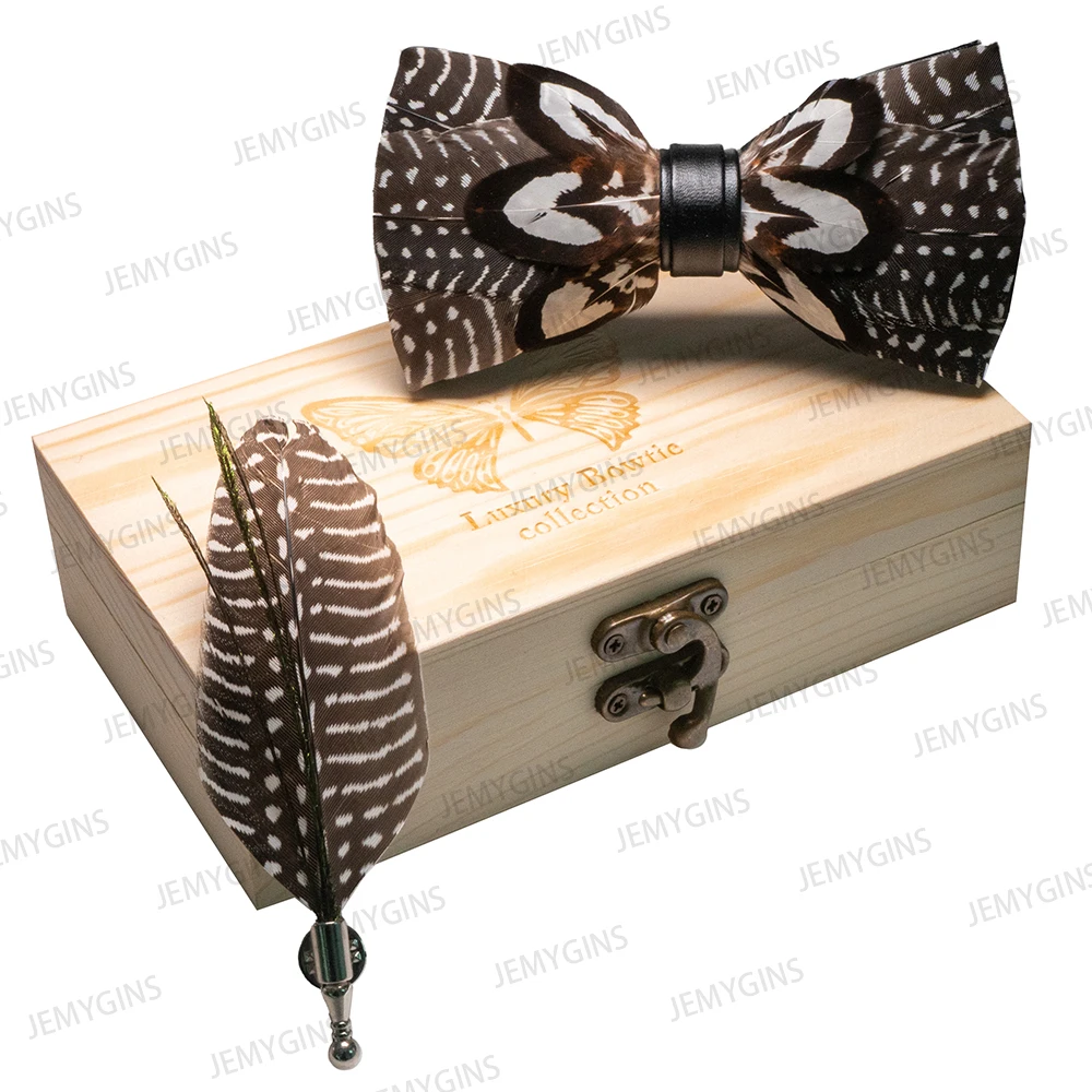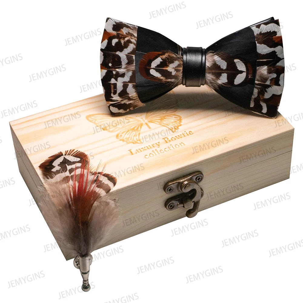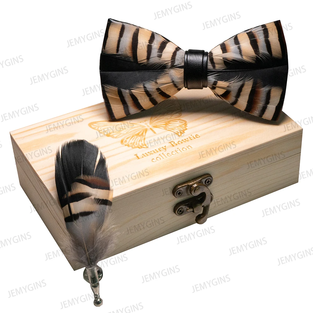 Оригинальный галстук-бабочка jemygin с натуральными перьями, изысканный мужской роскошный галстук-бабочка ручной работы, деревянная Подарочная коробка, набор для свадебвечерние НКИ