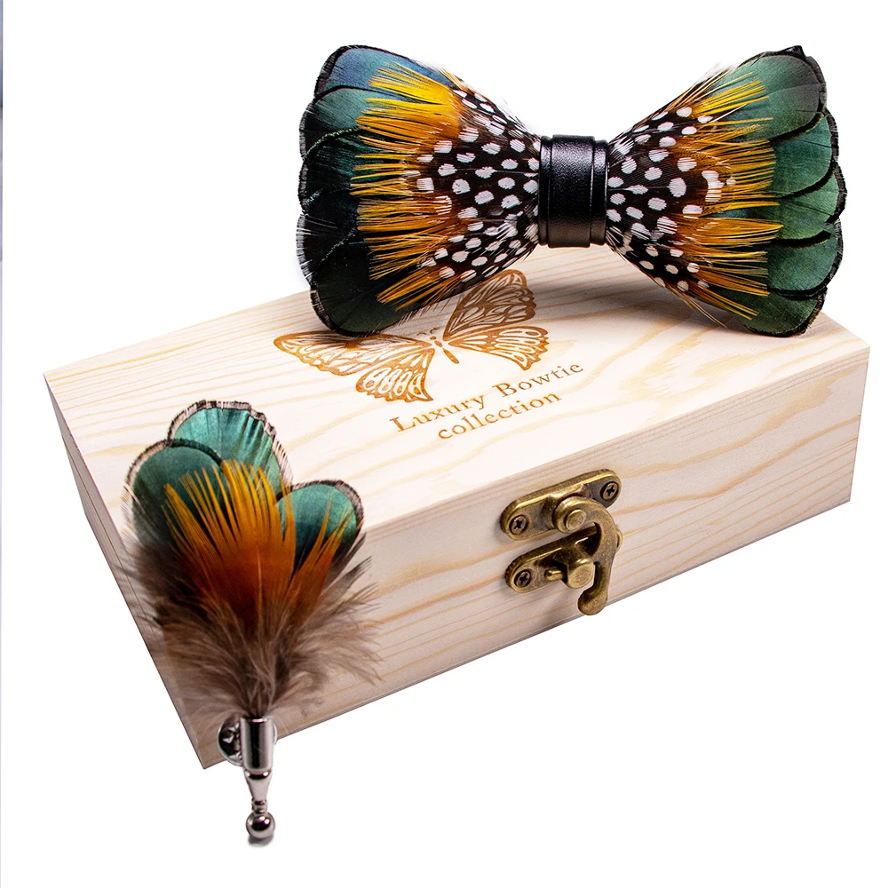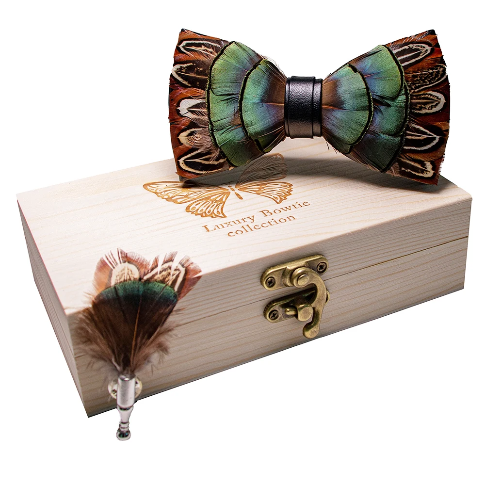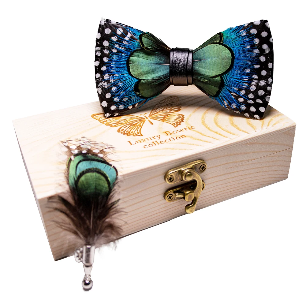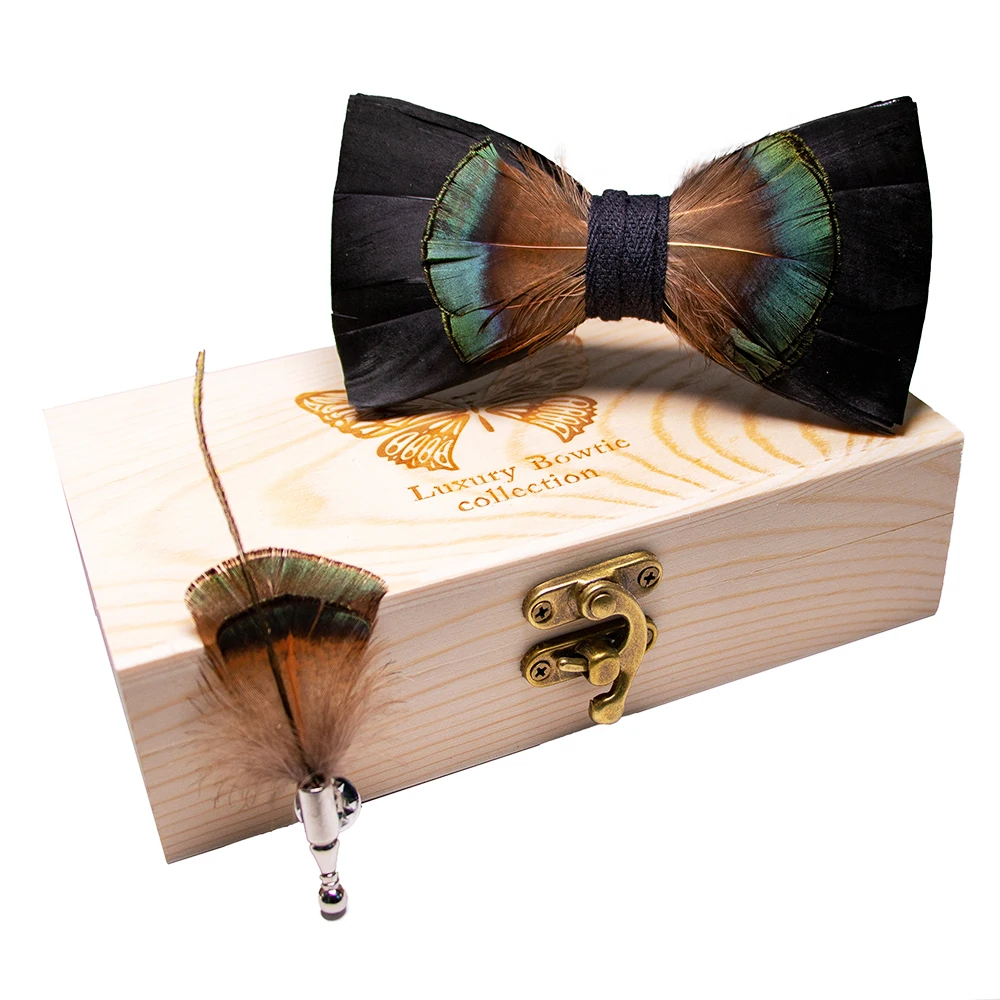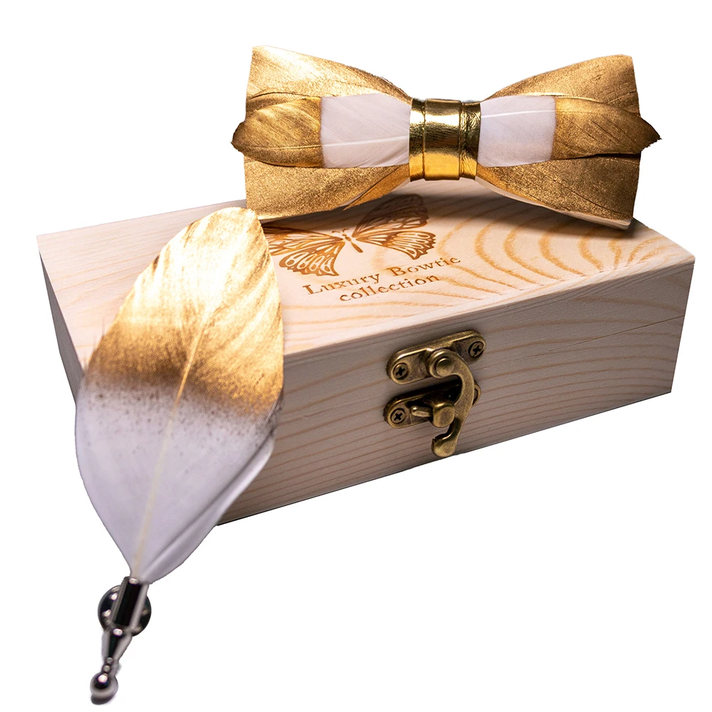Оригинальный галстук-бабочка jemygin с натуральными перьями, изысканный мужской роскошный галстук-бабочка ручной работы, деревянная Подарочная коробка, набор для свадебвечерние НКИ