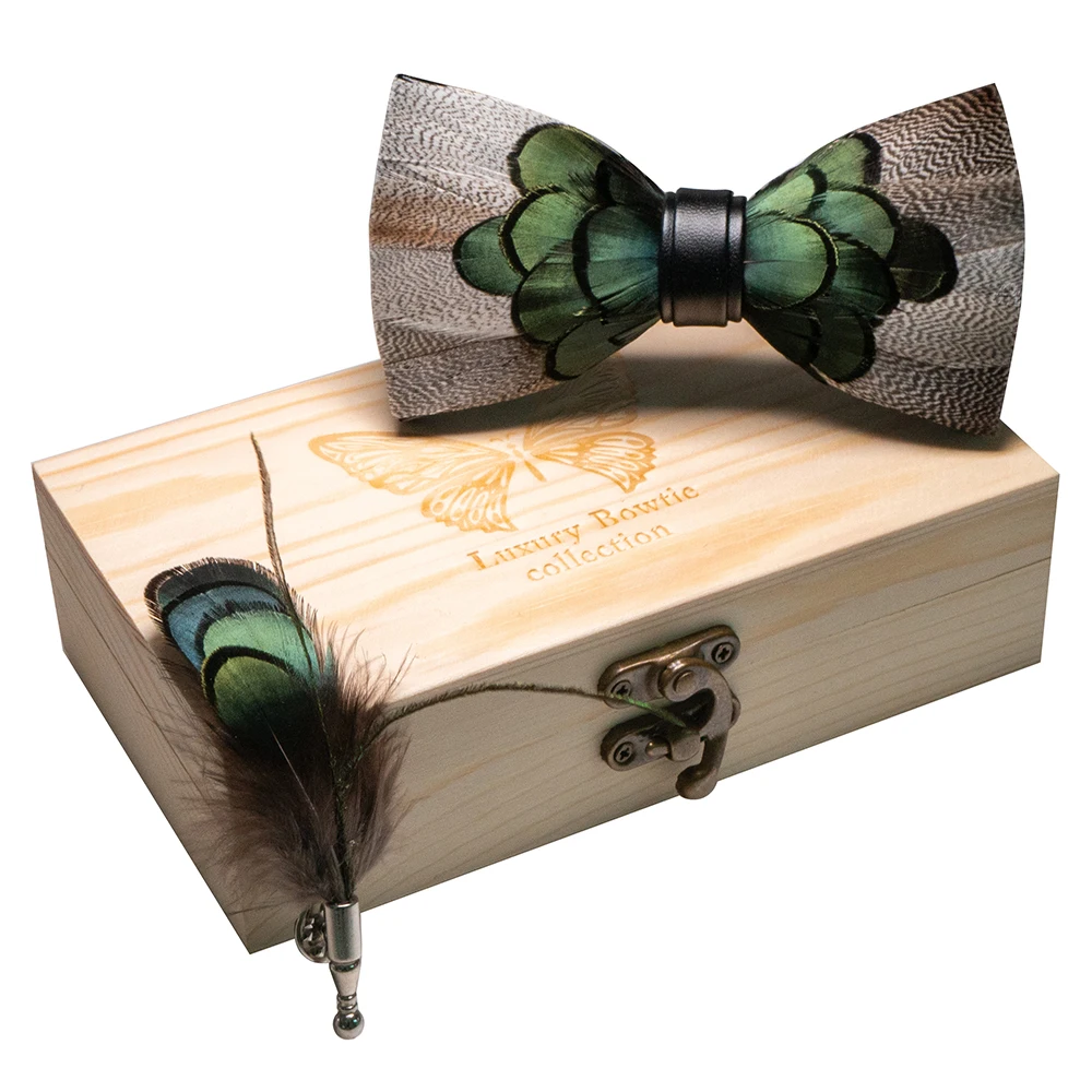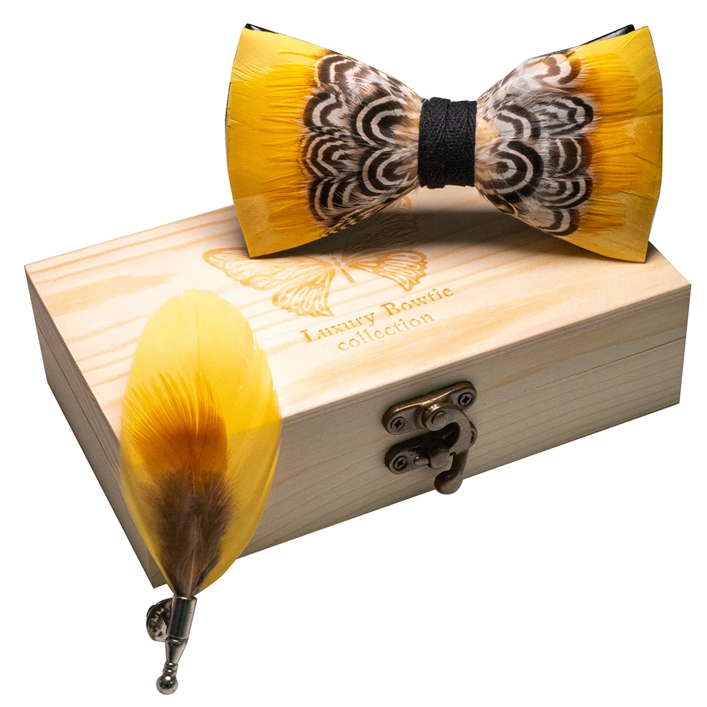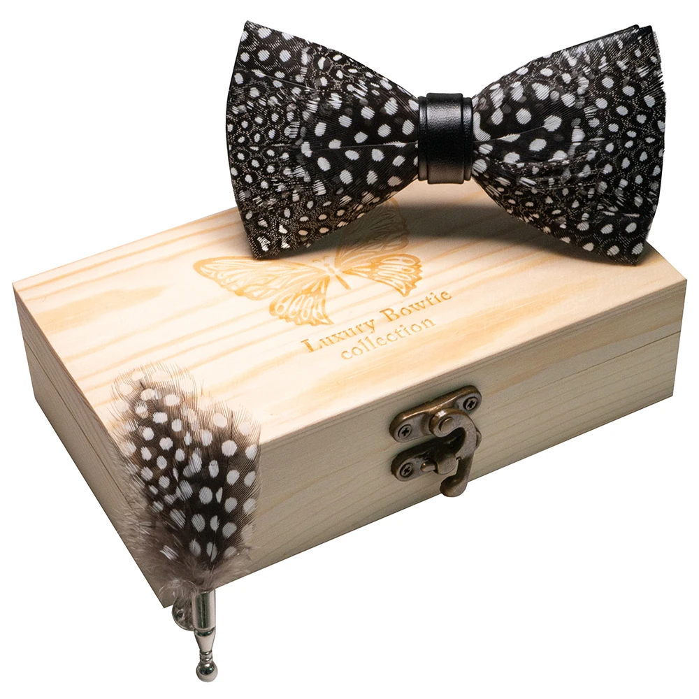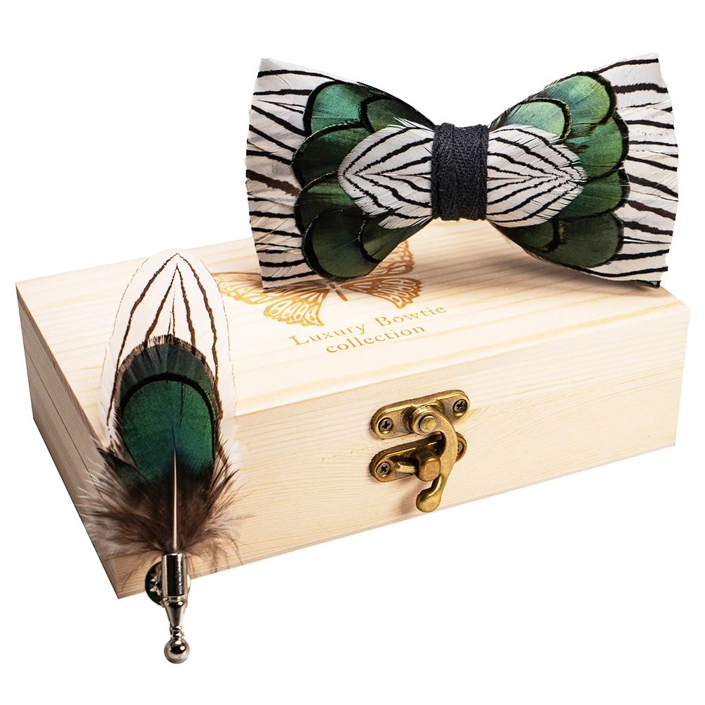 Оригинальный галстук-бабочка jemygin с натуральными перьями, изысканный мужской роскошный галстук-бабочка ручной работы, деревянная Подарочная коробка, набор для свадебвечерние НКИ