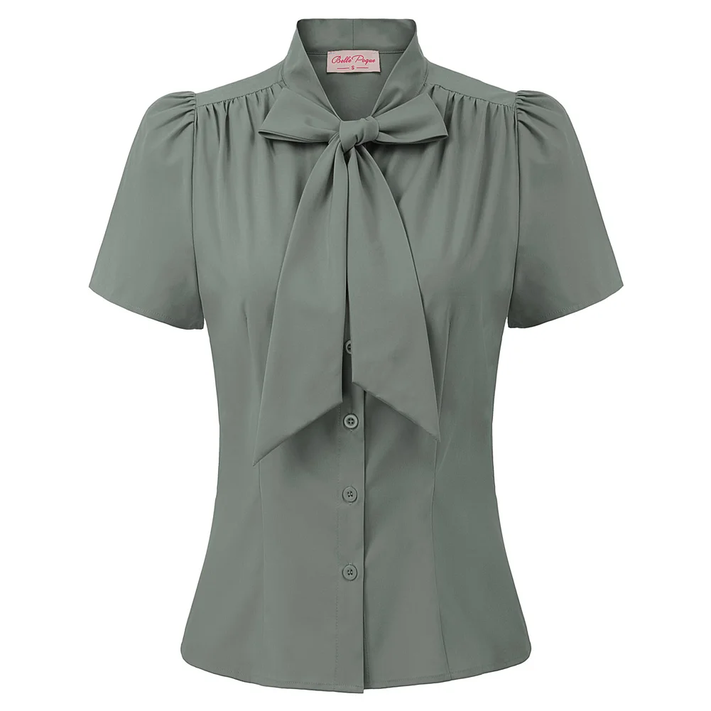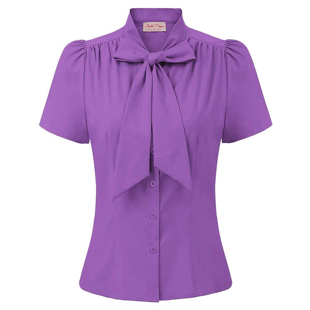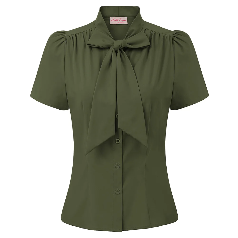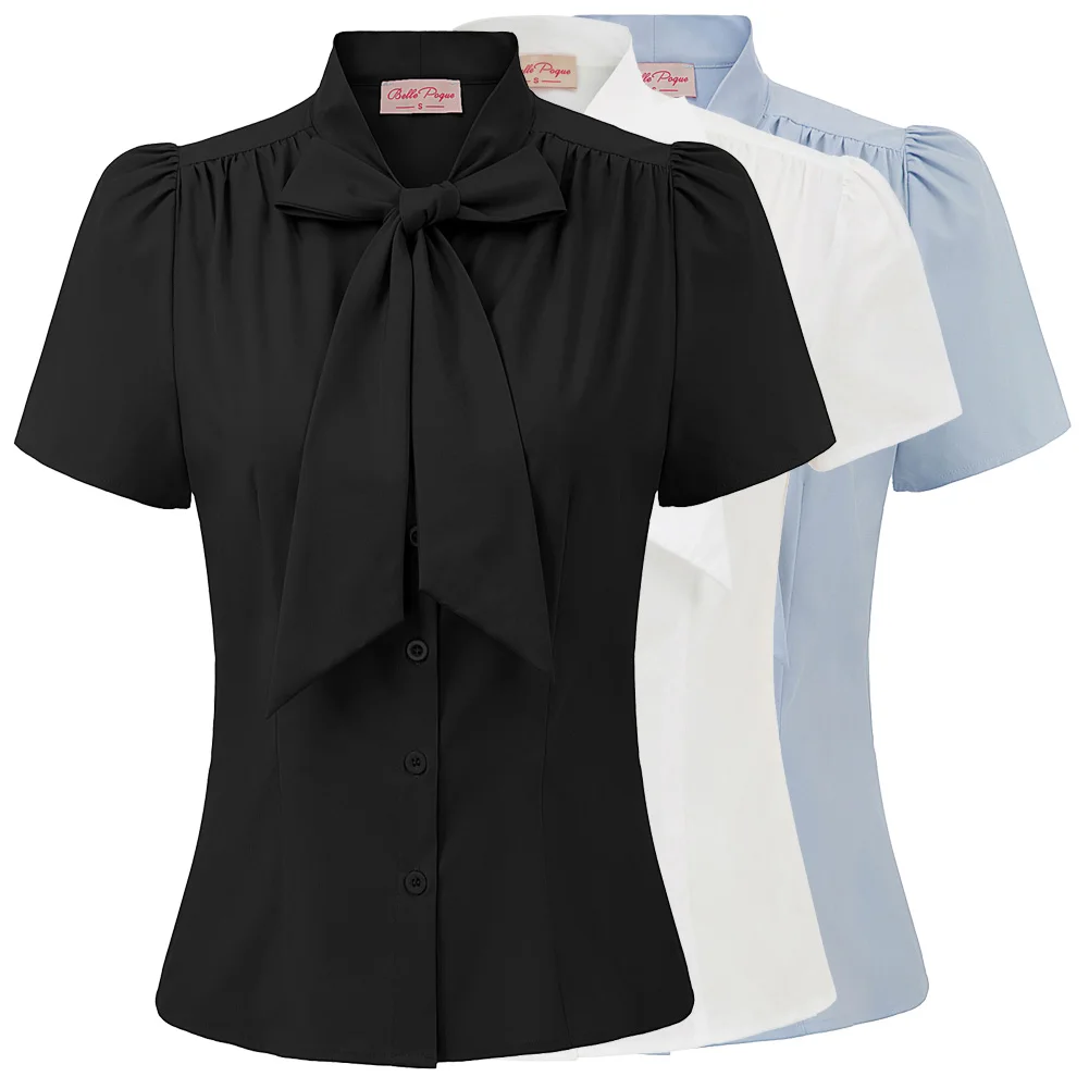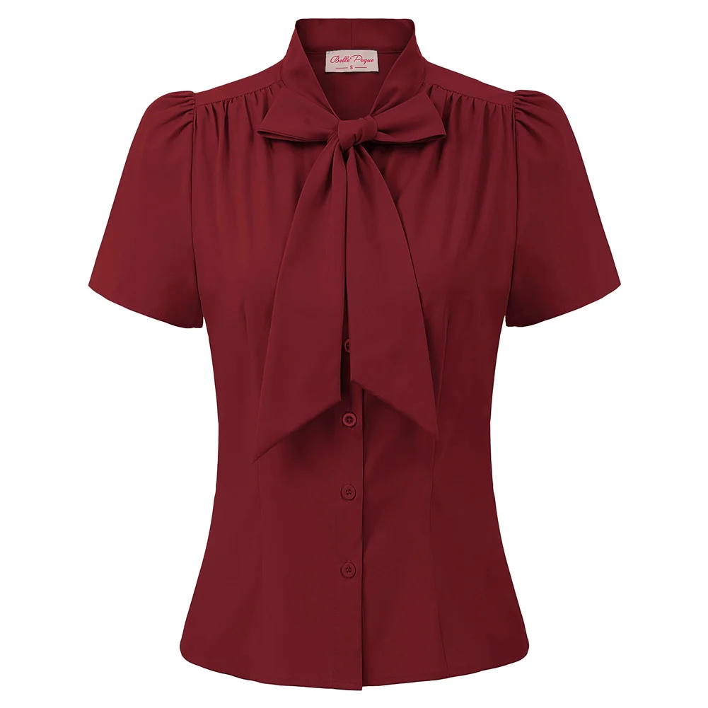 Женская рубашка с коротким рукавом, с бантом, в стиле ретро