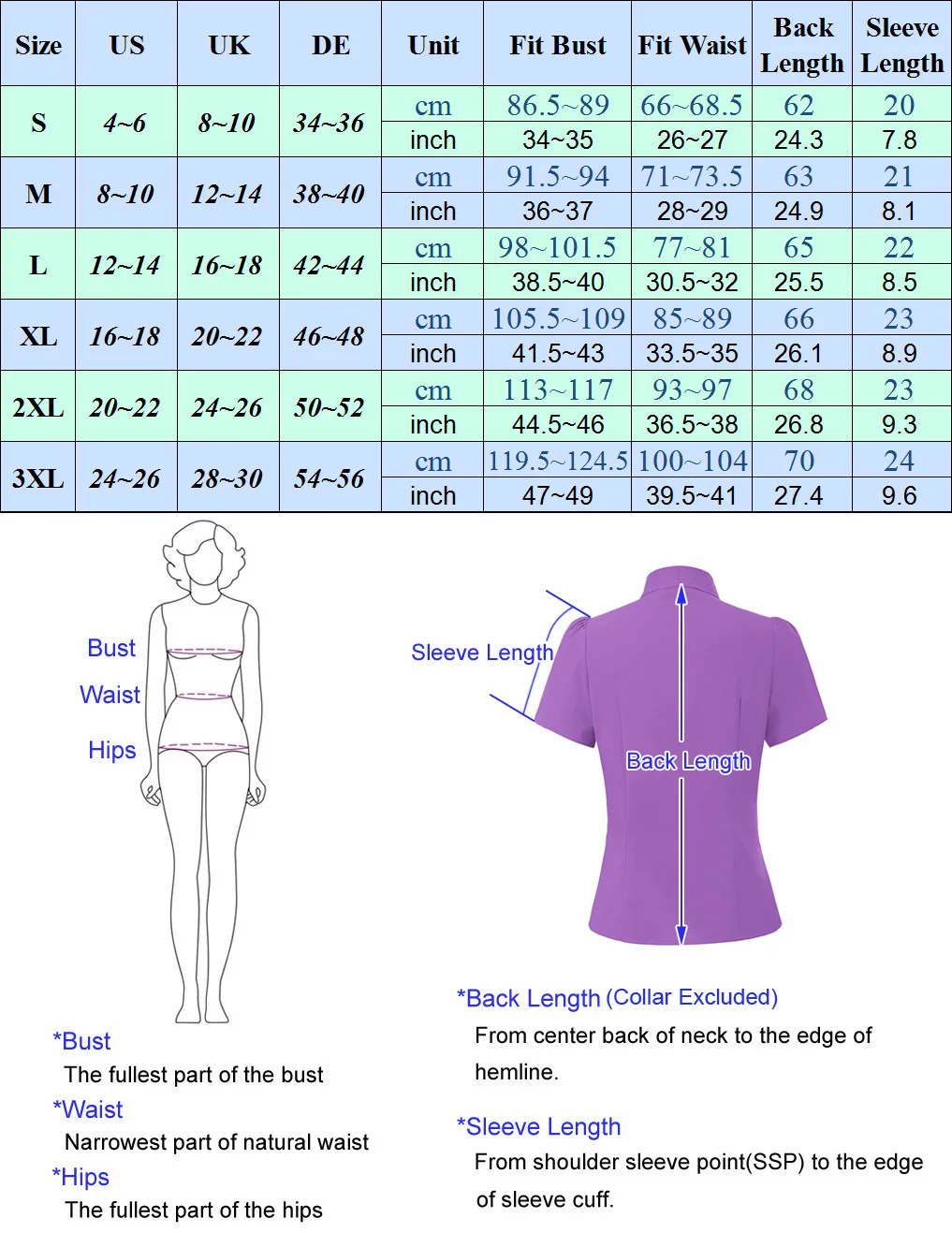 2. Возможны незначительные отклонения в размерах (± 2 см) для измерения длины одежды вручную.