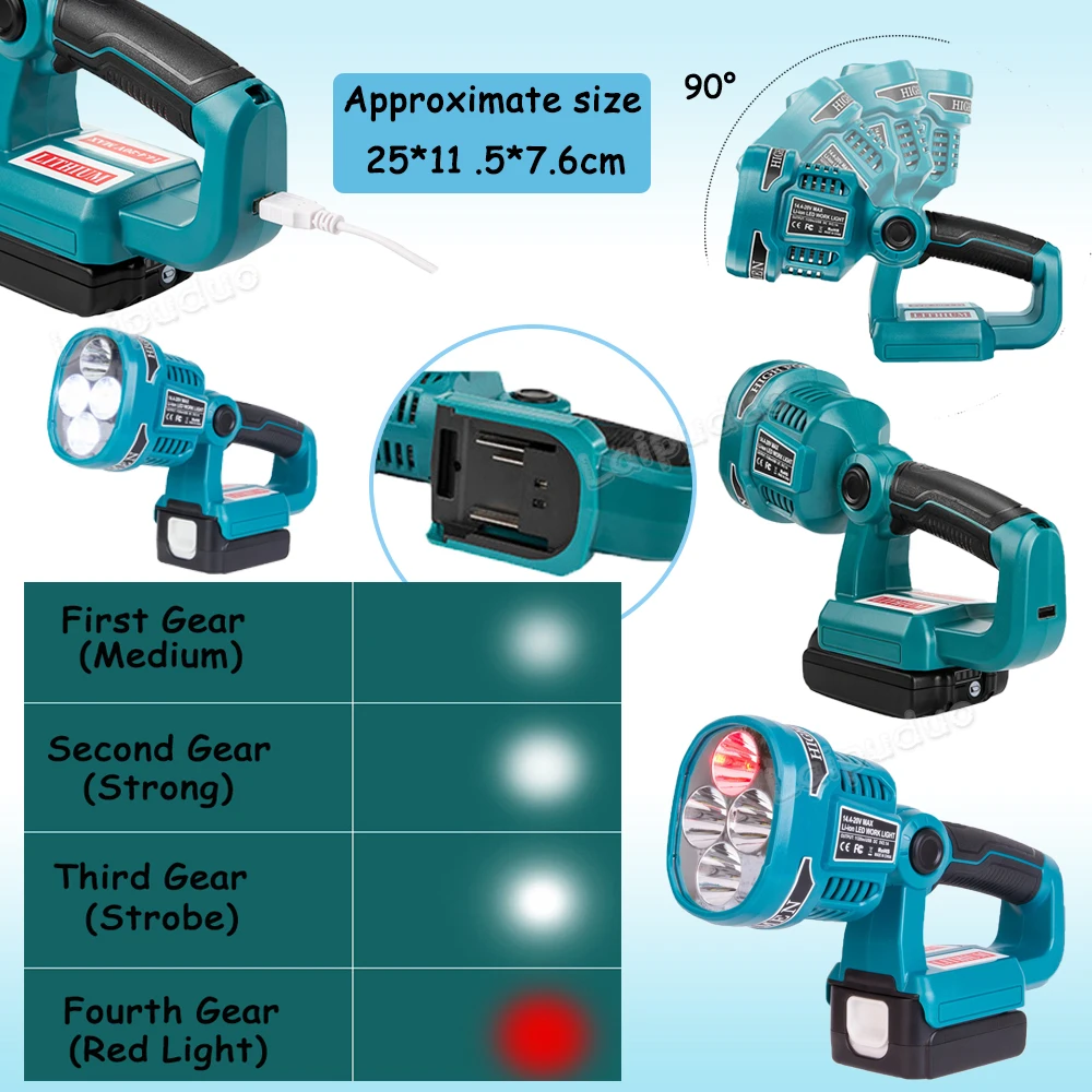 Светодиодный фонарь под батарею Makita 3 Вт12 Вт, 18 В, для литиевых батарей BL1430, BL1830 (без батареи и зарядного устройства), с USB-разъемом, для использования на улице