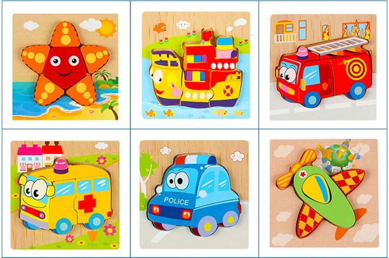 Мультяшная деревянная головоломка, пазл, доска Монтессори, игрушки, животные, машинки, пазлы для детей, обучающая игрушка для 1, 2, 3 лет