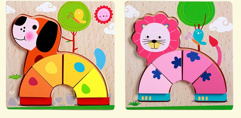 Мультяшный Детский 3D Деревянный пазл головоломка доска Монтессори ...