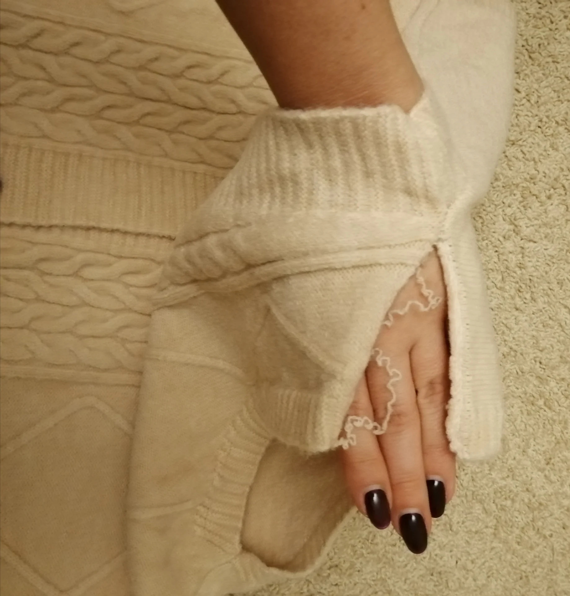 Симпатичный, тёплый, шерсть в составе точно есть, сильно электризуется, тоньше, чем кажется на фото, точно не оверсайз,, скорее - европейский L. Цвет красивый, голубой с розовой нитью, в целом очень понравился. Доставка какая-то молниеносная - до Москвы доехал за 6 дней. Спасибо!