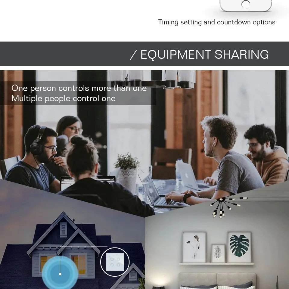 Удаленно Управляйте переключателями там, где вы находитесь, даже когда находитесь снаружи.Удобно управлять светом и индикатор подсветки с помощью приложения Tuya независимо от того, где вы находитесь. (Совместимость с Android и iOS.) кроме того, вы можете легко поделиться им со своей семьей, чтобы контролировать свет вместе с приложением Tuya/Smart life.