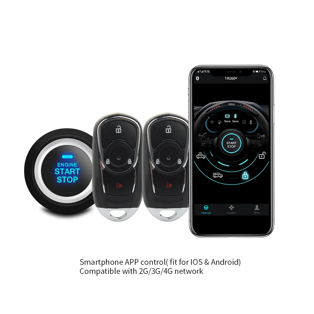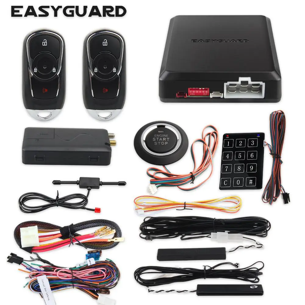 Это EASYGUARD PKE Автомобильная сигнализация с gps-отслеживанием, пассивным входом без ключа, дистанционным запуском, пуском, сенсорный ввод пароля. Этот товар может управляться смартфонами IOS и Android.