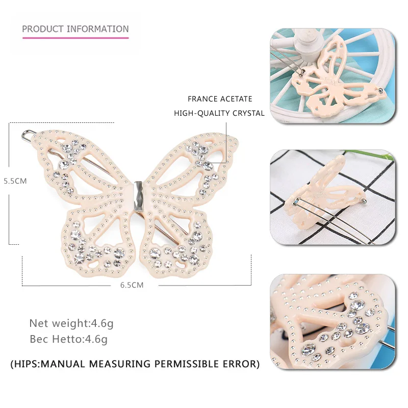 Изысканные заколки для волос в форме бабочки, высококачественные ацетатные заколки для волос, изящные аксессуары для волос для девочек