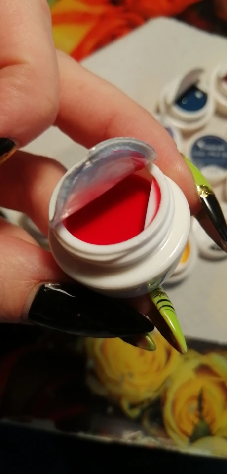Товар пришёл в течении месяца. Побывала красить типсы, краска очень густая, цвет насыщенный