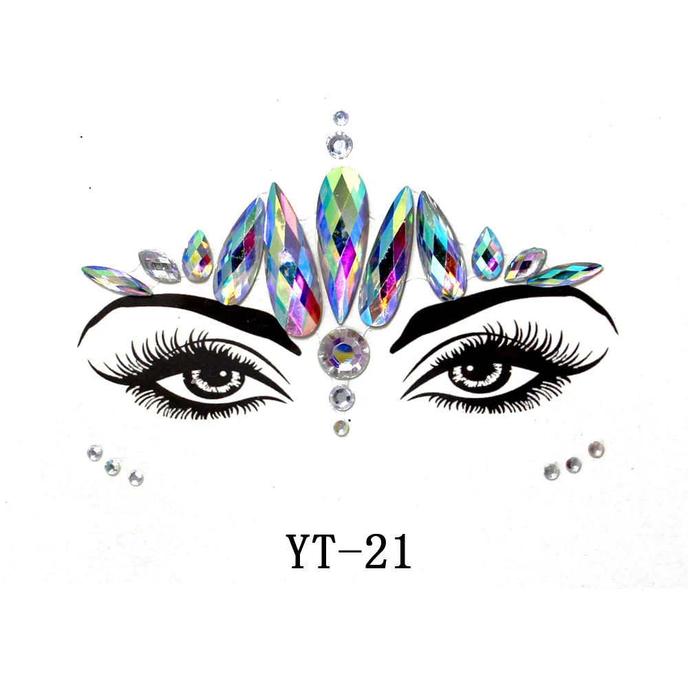 Новинка 2020, модные 3D наклейки с кристаллами, цветные блестящие акриловые наклейки, маскарадное лицо, блестящее украшение, временные татуировки