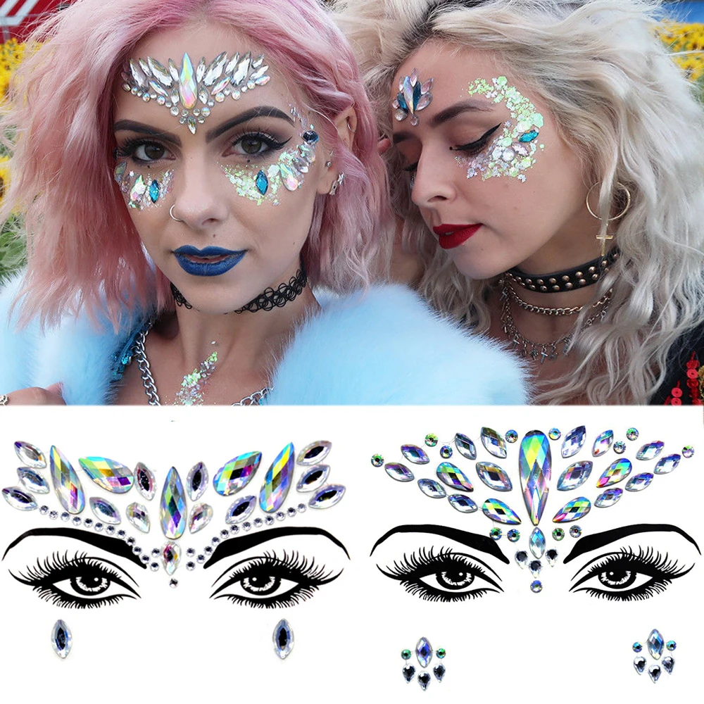 Праздничные драгоценные камни стразы для лица, временная татуировка...