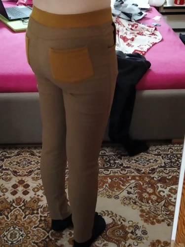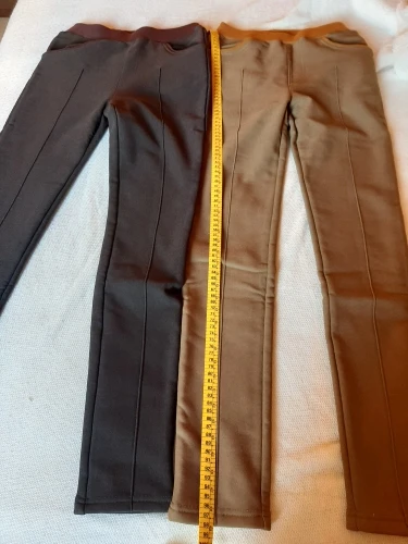 Spodnie są super. Jedne z najlepszych jakie kupiłam w Aliexpress. To mój drugi zakup. Spodnie brązowe i beżowe są jakby ciut dłuższe niż czarne w tym samym rozmiarze. Noszę L 40 i kupiłam za pierwszym razem wszystkie spodnie XXL wg wymiarów w tabeli, ale czarne, choć da się je nosić, były ciut ciasne i krótsze, więc kupiłam jeszcze o rozmiar większe. I muszę powiedzieć, że te już są idealne, luźniejsze minimalnie i dłuższe. Nie ma jednak dużej różnicy między rozmiarami. Przydadzą mi się jedne i drugie, zwłaszcza że się odchudzam. Mam 170 cm wzrostu i spodnie są idealne, nie są za krótkie. Ważę 67 kg i mam 105 cm w biodrach. Bardzo polecam, spodnie od spodu na czymś jak polar, ciepłe, zgrabne, eleganckie i nie pogrubiają. Nawet w jasnych nie wyglądam grubo.