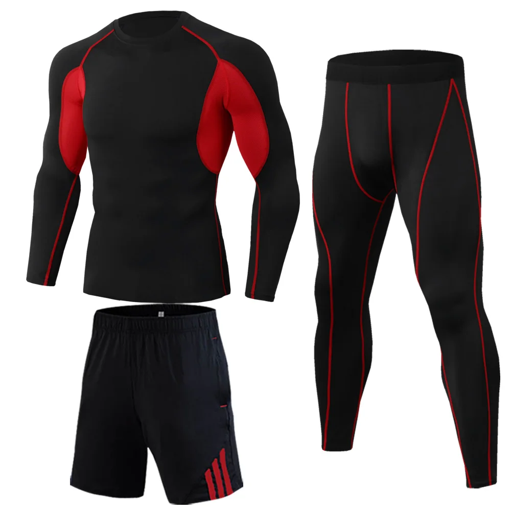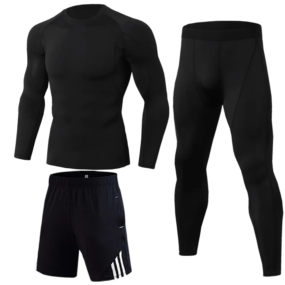 Мужские компрессионные комплекты для бега, футболка с длинным рукав...