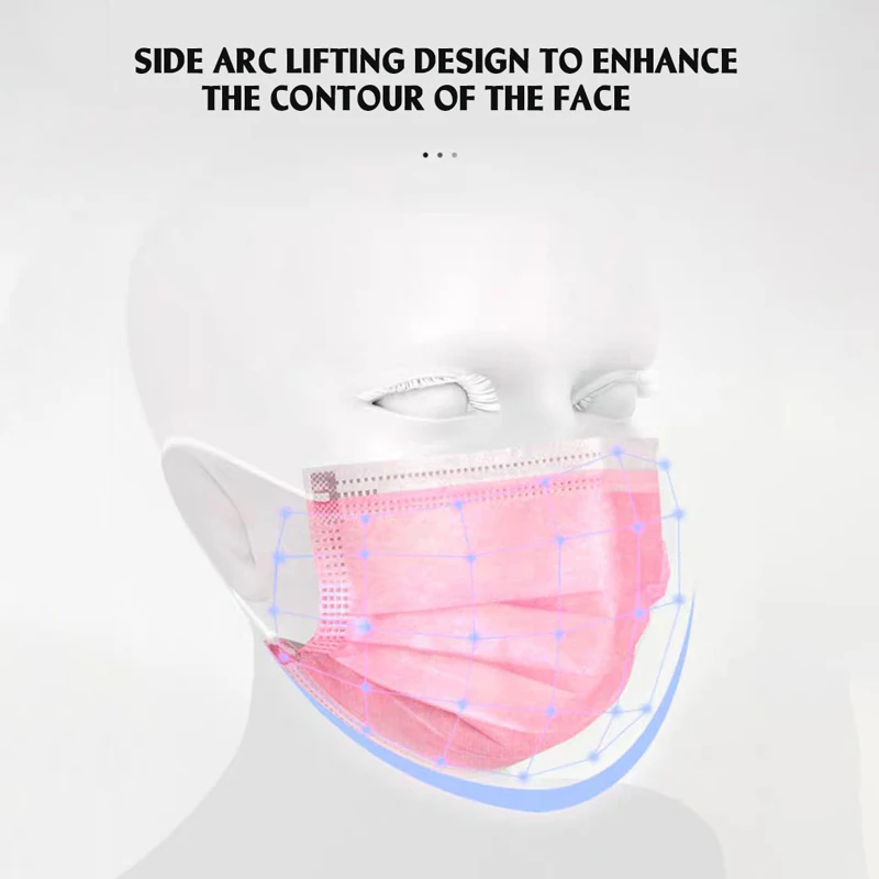 Маска для рта 3-слойная розовая одноразовая для взрослых, маски с з...