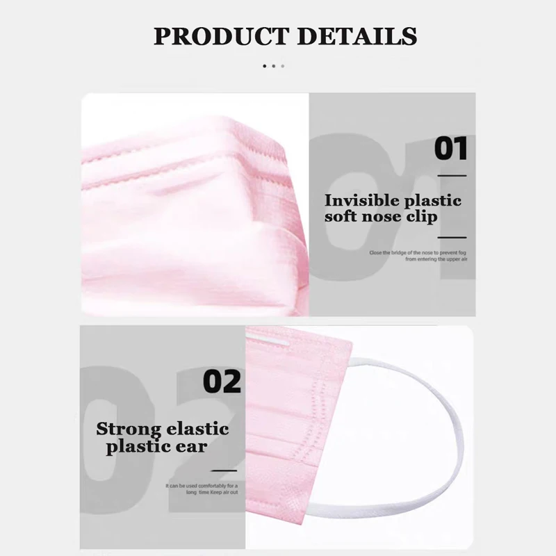 Одноразовая трехслойная маска, маска с фильтром, дышащая маска для рта с петлями для ушей, маска розового цвета