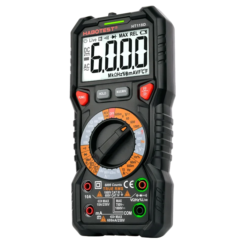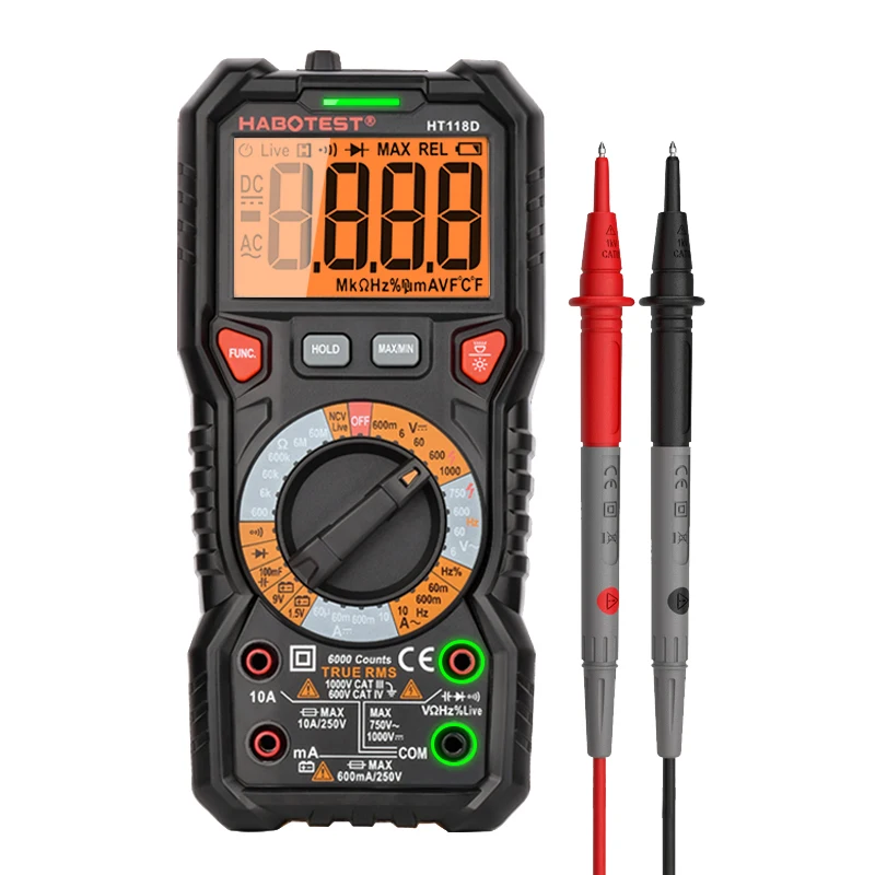 Цифровой мультиметр HT118D, профессиональный, True RMS, ручной диапазон, Avometer, 6000 отсчетов, Гц, Ом, тестер емкости батареи, HABOTEST