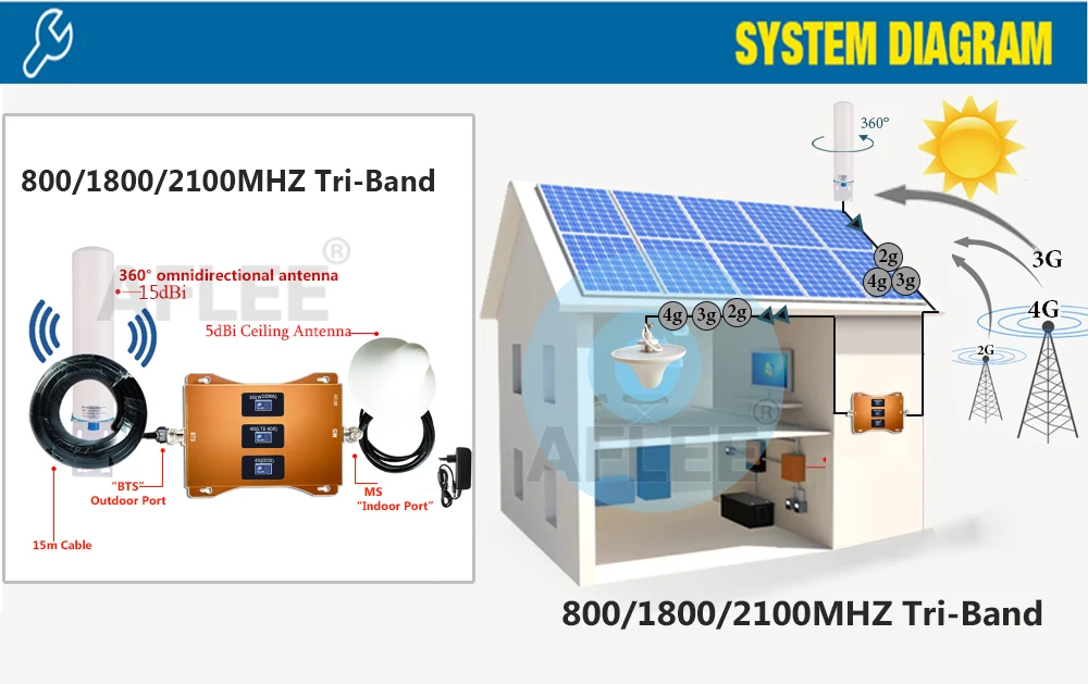 Этот ретранслятор сигнала был обновлен. Монтажная плата и разъем питания улучшены. Большинство проблем было решено. Это лучшее качество и длительный срок службы.1,1 шт. усилитель = B20 800 + 1800 + 2100 МГц трехполосный усилитель сигнала + источник питания + пользовательский Menual;2. Полный комплект = B20 800 + 1800 + 2100 МГц трехдиапазонный усилитель сигнала + 15dBi 360 ° всенаправленная наружная антенна + панель 9dBi Внутренняя антенна + кабель 15 метров + источник питания + пользовательский режим;