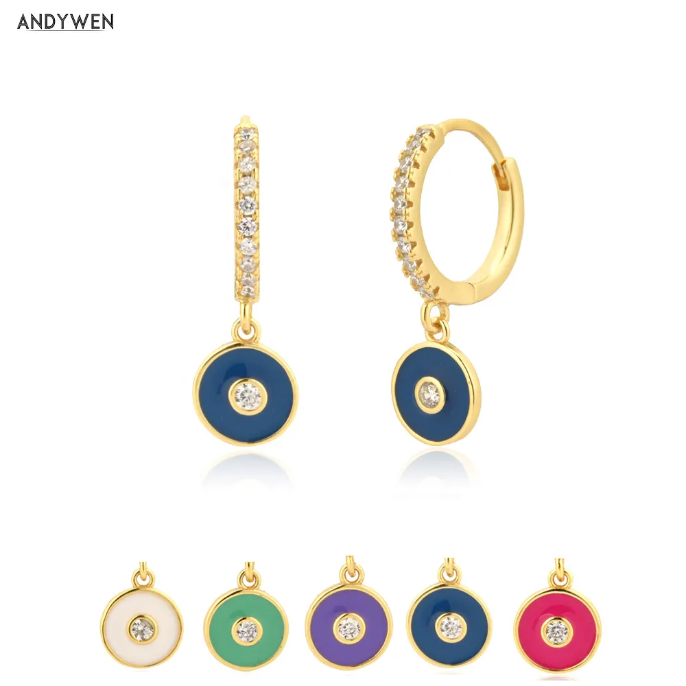 Женские круглые серьги-капельки ANDYWEN, из серебра 925 пробы, с синим дьявольским глазом, с цирконием, круглая, для вечерние, 2020