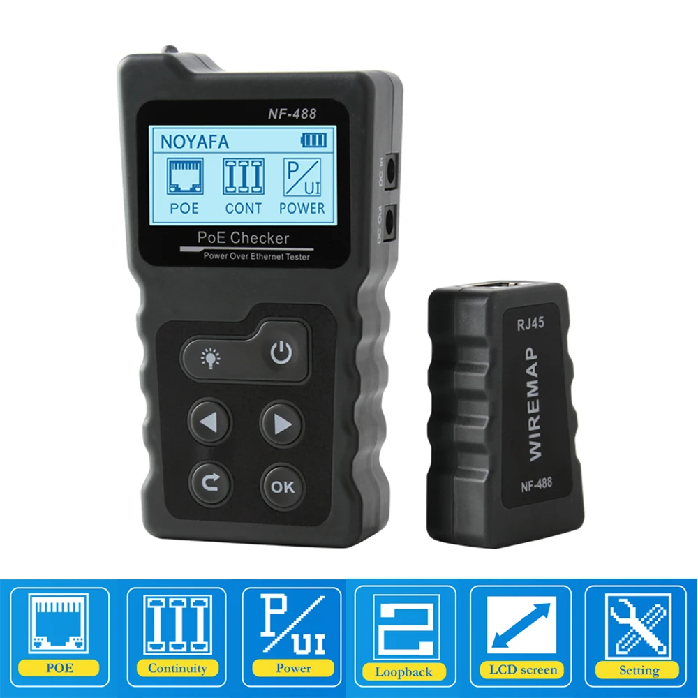 NF-488 тестовый er встроенный Тестовый er мощность по Ethernet напряжение тестовый er тест для тестирования POE сетевой кабель непрерывность проверки