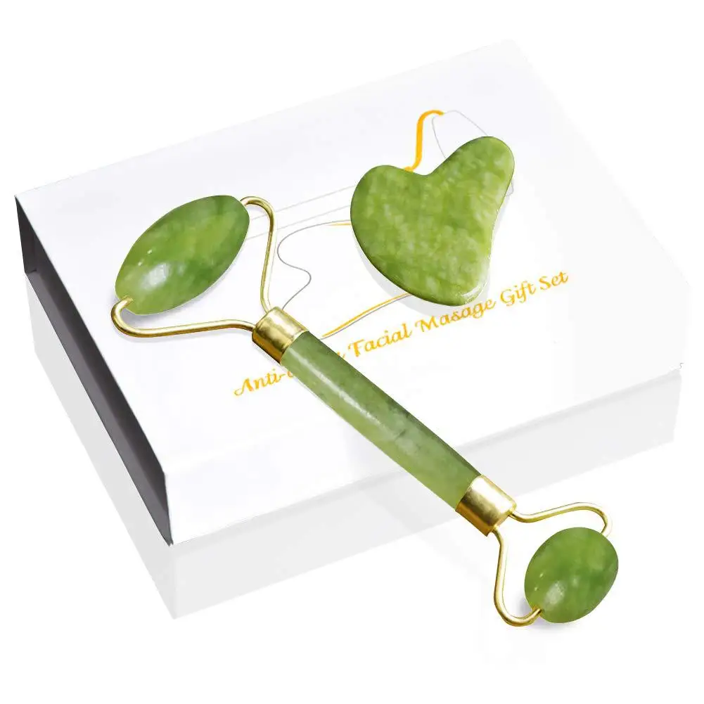 Роллер для лица нефрит для массажа, для лица, тела, головы, шеи, массажный камень, Нефритовая доска для тела, гуаша, набор инструментов для красоты