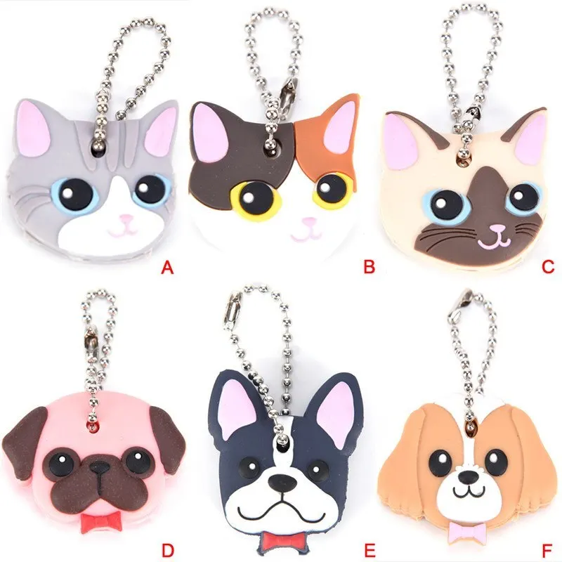 1 шт. Силиконовое кольцо для ключей, крышка для головы, чехол для ключей, чехол для ключей, кошачий хомяк, мопс, собака, животные, прекрасный подарок, ювелирное изделие