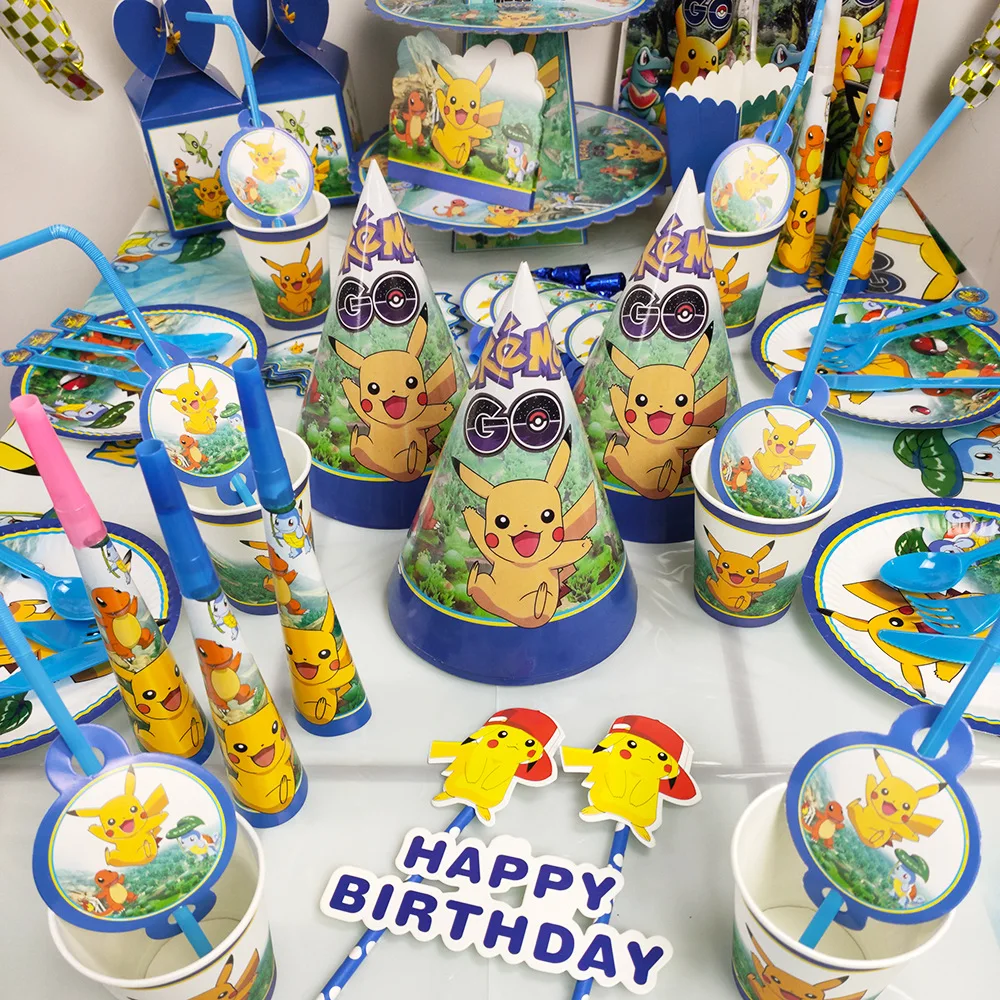 Набор для украшения Pokmon Pikachu Monster, скатерть, ложка, шляпа, фигурки героев аниме, набор для детского дня рождения
