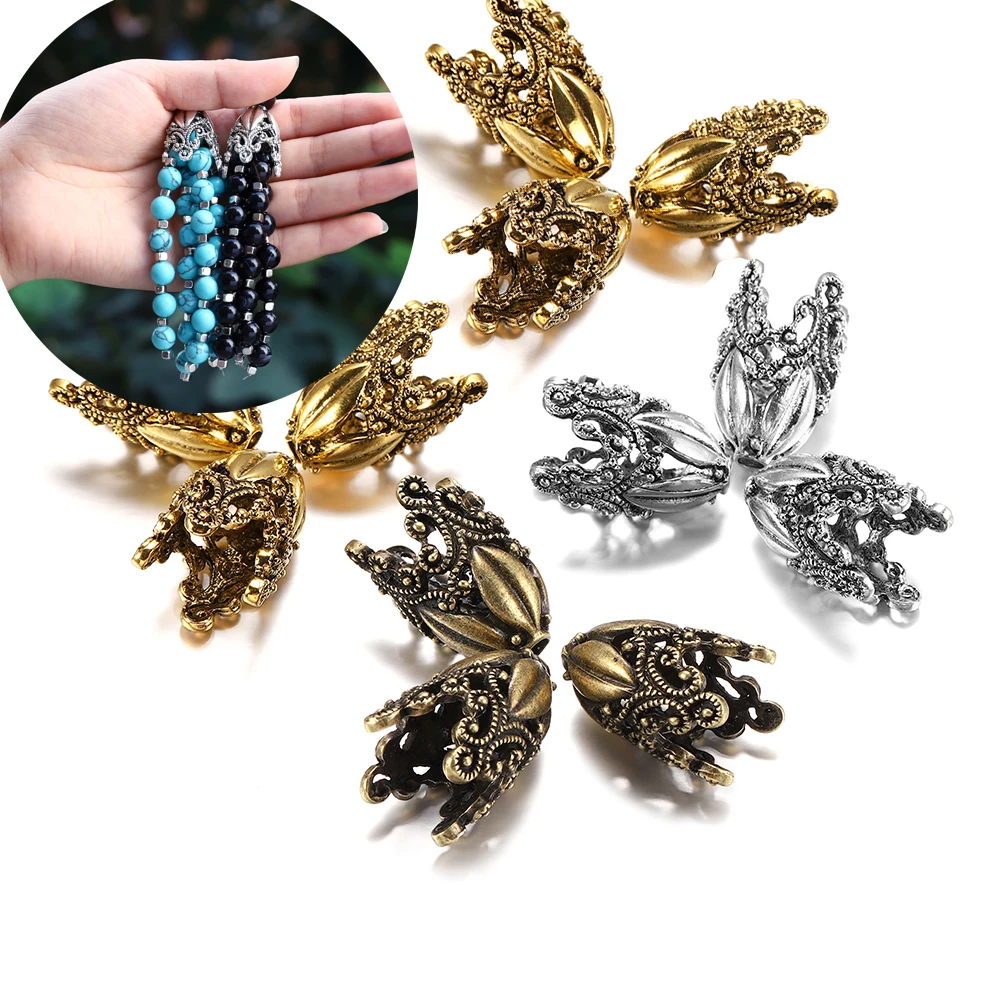 Концевые заглушки для сережек, 2 шт.лот, из сплава, с полыми цветами, разной формы