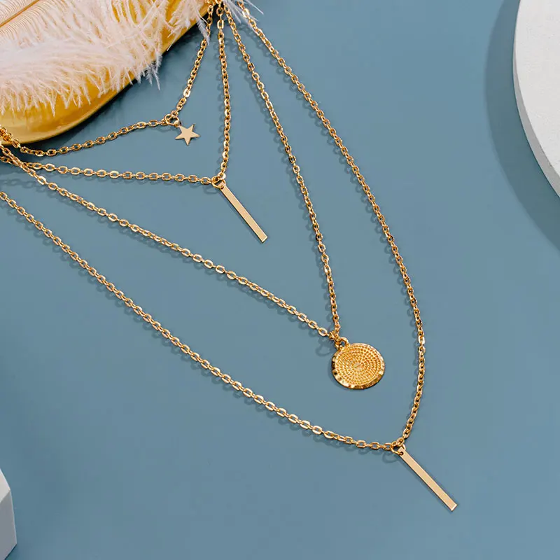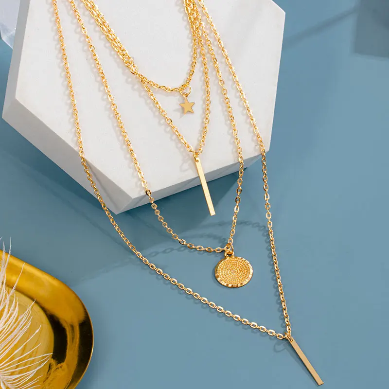 Ожерелье многослойное женское в богемном стиле, Винтажное колье с подвеской в виде Луны и золота, геометрическое колье с Шарм-звезда, 2020
