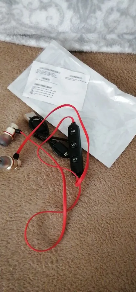 Описание товара: -Патенты на эксклюзивный дизайн, эргономичный дизайн наушников, удобно носить, легко падать. -Ушные вкладыши уменьшают лучшие басы в мире. -Уникальный Магнитный контроль, нелегко упасть. -Встроенный высокочувствительный микрофон для более четкого качества голоса. -Встроенный литиевый аккумулятор, поддержка быстрой зарядки за 1,5 часа, обеспечивает до десяти часов прослушивания музыки/разговора. -Bluetooth один с двумя для удовлетворения потребностей нескольких источников. -С помощью кнопки воспроизведения вы можете управлять музыкальным плеером, совершать и принимать звонки и другие функции. Ключевые параметры: (1) Версия Bluetooth: CSR4.1 (2) Частотный диапазон: 20-20000 Гц (3) Частота использования Bluetooth: 24 ГГц (4) расстояние передачи давления: около 15 метров (отключено) (5) Цвет: красный, черный (6) Время ожидания: около 240 часов (7) Время звонка/воспроизведения: около 10 часов Упаковочный лист: 1 Bluetooth-наушник 1 * USB-кабель для зарядки 1 * Руководство пользователя на английском и китайском языках