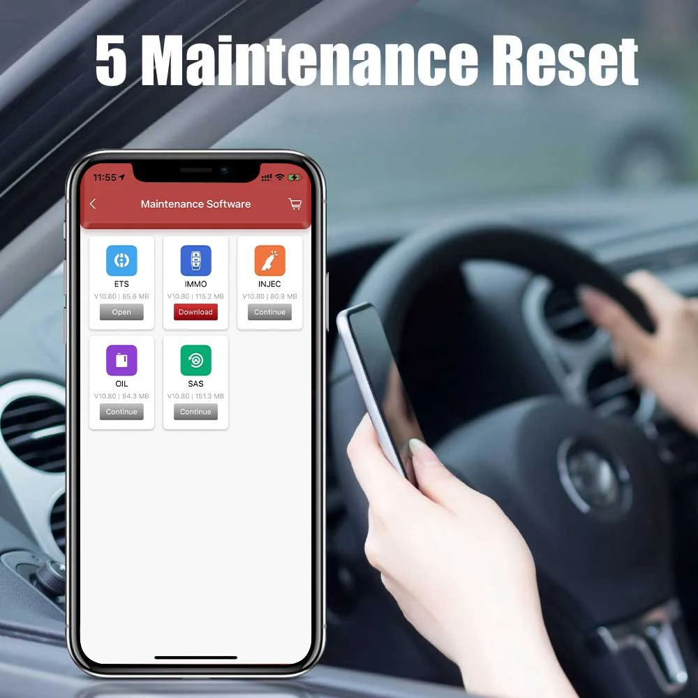 ИНТЕГРАЦИЯ 15 часто используемых функций обслуживания, т. Е. Сброс AFS, сброс кровотечения, сброс BMS, сброс коробки, сброс тормоза, Сброс DPF, сброс EGR, сброс ETS, сброс IMMO, сброс INJEC, сброс масла, сброс SAS, сброс солнца, сброс SUS, сброс TPMS.