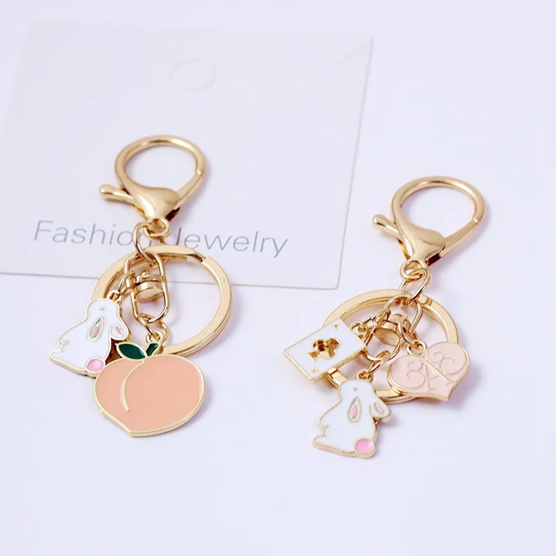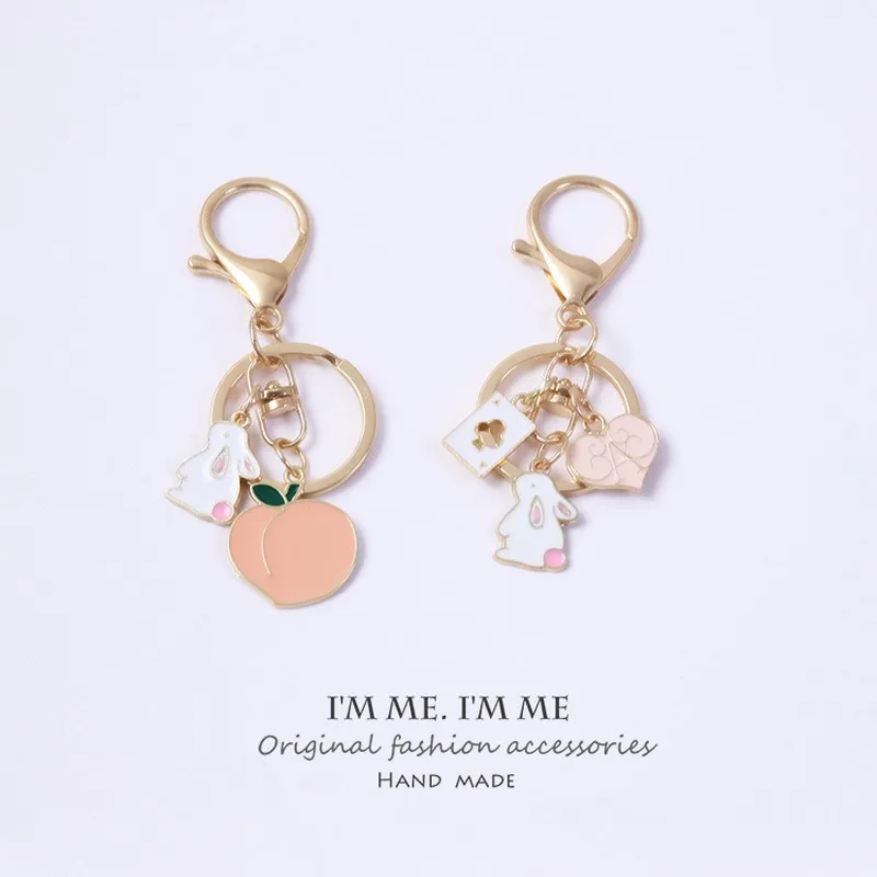 2020 девчачье Стиль ручной работы в виде капель масла плюшевый кролик милый фрукт персик брелок маленькая сумочка персикового цвета кулон ювелирные изделия аксессуары из алюминиевого сплава