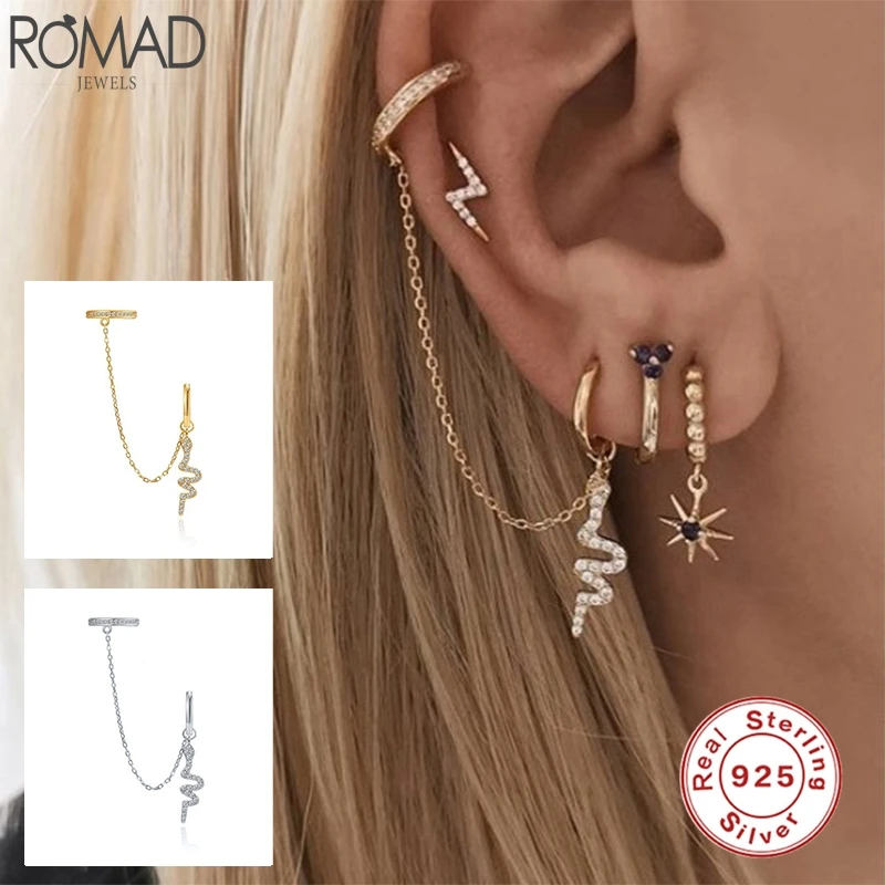 Romad 1 шт. 925 пробы Серебряная Ушная манжета змеиная змея Висячие Серьги Huggie для женщин Изящные Ювелирные изделия хрящи серьги W4