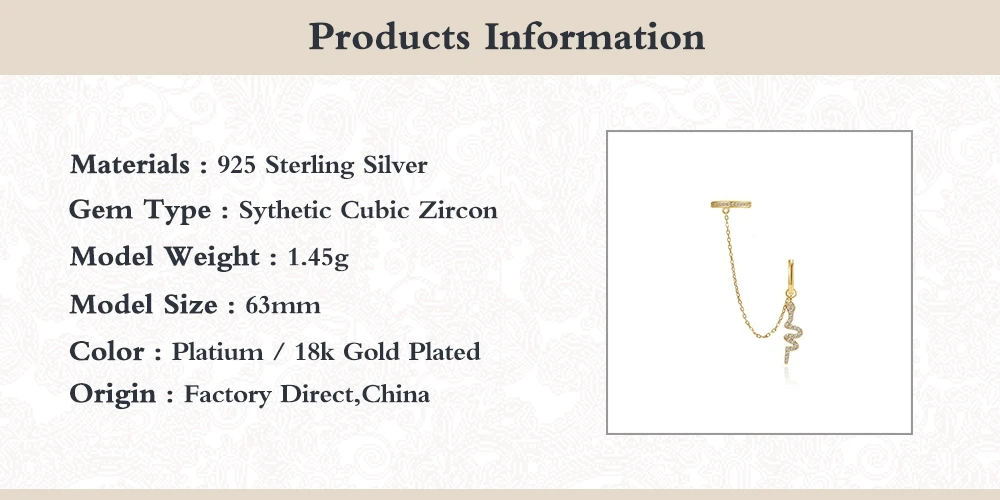 Romad 1 шт. 925 пробы Серебряная Ушная манжета змеиная змея Висячие Серьги Huggie для женщин ювелирные изделия каффы для хряща W4